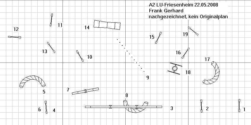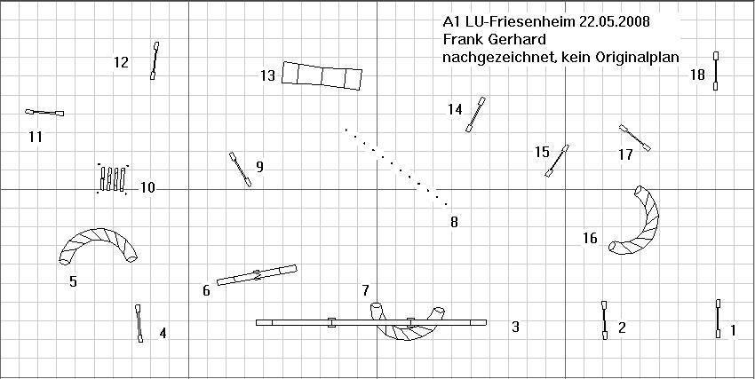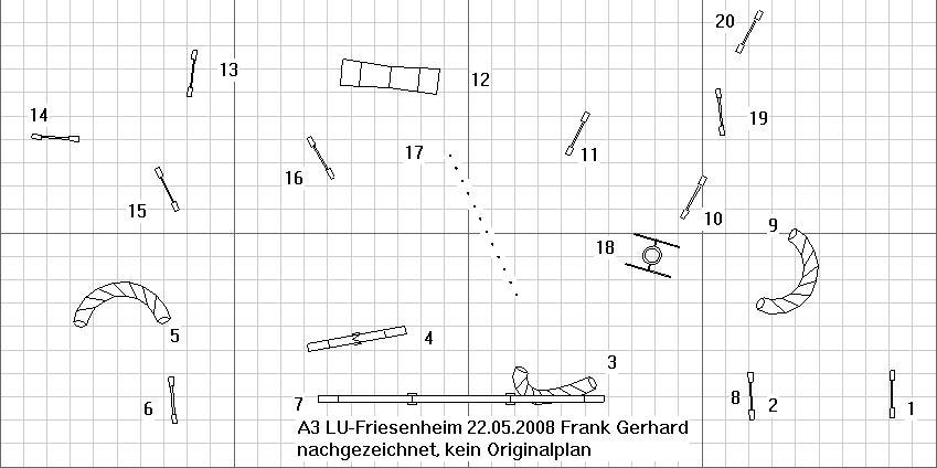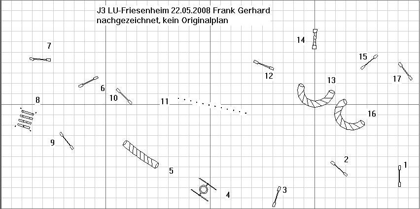 22.05.2008 Ludwigshafen-FriesenheimHier sind wir schon einige Male gestartet, auch ein tolles Seminar mit Katrin Busse haben wir hier erleben dürfen. Diesmal Parcoure von und mit Frank Gerhard. Nett zu laufende nicht sehr schwierige Aufgaben. War ja schliesslich Feiertag. Im A3 hatte ich erst ein bisschen Bedenken, weil der Tunnel 3 so komisch unter dem Steg lag, dass ich befürchtete, der eine oder andere Hund könnte im Tunnel gegen die Stütze vom Stegaufgang prallen.