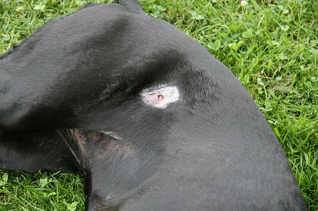 31.05. & 01.06.2008 NeulussheimUnser eigenes Turnier, deshalb nicht viel über das drumherum. Richter waren Alex Beitl und Michael Kanbach mit LRA Martin Sutter sowie Steffi Semkat. Die Parcoure waren allesamt flott zu laufen und ohne grosse Probleme. Parcourspläne findet man bei Agility-Carlos oder Whippet-Insider oder Granting Pleasure. Samstag A-Lauf: Der Anfang ging ganz prima, allerdings hatte ich fast wieder einen Wandaufsprung und Laila löste sich wieder mal deutlich zu früh. Das machte mich diesmal so zornig, dass ich schon gar keine Lust aufs weiterlaufen mehr hatte. Hätte ich auch grad sein lassen können, mit soviel Zorn im Bauch arbeitet die Grosse ja mit mir nicht... Prompt habe ich sie in Tunnel 7 ins falsche Loch gestopft. Anschliessend sprang sie mir noch so richtig böse auf den Steg auf, den hab ich dann wiederholt, dann war unser Faden auch wieder da. Sogar der Slalomeingang, den ich Laila so gar nicht zugetraut hatte, klappte super und sie blieb auch im Slalom drin, als ich mich hinter 18 absetzte. Samstag Jumping: Dummerweise hatte Laila kurz vor dem Start eine Kollision mit einem anderen Hund, der (irgendwo verständlicherweise) ihr Abstand-halten-Gezicke nicht akzeptieren wollte und ihr ein Loch in die Hautfalte zwischen Bauch und Bein verpasste. Ich hab mir das Maleur angesehen , da aber nur Haut durchtrennt und keine Muskel oder Sehnen angekratzt waren und Laila auch sonst nicht beeinträchtigt schien, bin ich den Jumping noch mit ihr gelaufen. Alex hatte so beim Abgehen die Bemerkung fallen lassen, dass man diesen Jumping auch stellenweise gut von hinten führen könnte, das war nicht mein ursprünglicher Plan, ich griff seine Idee aber dankbar auf, als ich beim besten Willen nicht so recht hinter Laila herkam. Funktionierte auch ganz gut, fehlerfrei (später kam noch 0,37 Zeitfehler drauf), also V0. Sonntag A-Lauf: noch immer war Laila nichts anzumerken als eine gewisse Berührungsempfindlichkeit, deshalb bin ich auch den A-Lauf am Sonntag gelaufen. Der war megagefällig, allerdings ist Laila nur hinter mir hergeschlichen. Ich hatte mir die ganze Zeit gedacht - ok, mit dem Loch kommt sie ja nirgendwo dran, aber als ich dann vor dem Slalom stand, wurde mir klar, dass sie spätestens jetzt 6 Mal mit der Stelle an die Stangen kommen würde. Na toll, sie hat den Parcours fehlerfrei abgearbeitet, allerdings halt in einer unglaublich langsamen Zeit. Im Verlauf der nächsten Stunden sah die Bisstelle dann auch deutlich gerötet aus und verursachte ihr auch zunehmend Schmerzen, so dass wir den Jumping absagten und Mittags zur Tierklinik Walla fuhren und Laila versorgen liessen. Antibiotika und Schmerzmittel für ein paar Tage und eine Salbe für die Wunde. Das im Anschluss an das Turnier geplante Seminar bei Alex und Sonja konnte ich dann nur noch als Beobachter wahrnehmen.