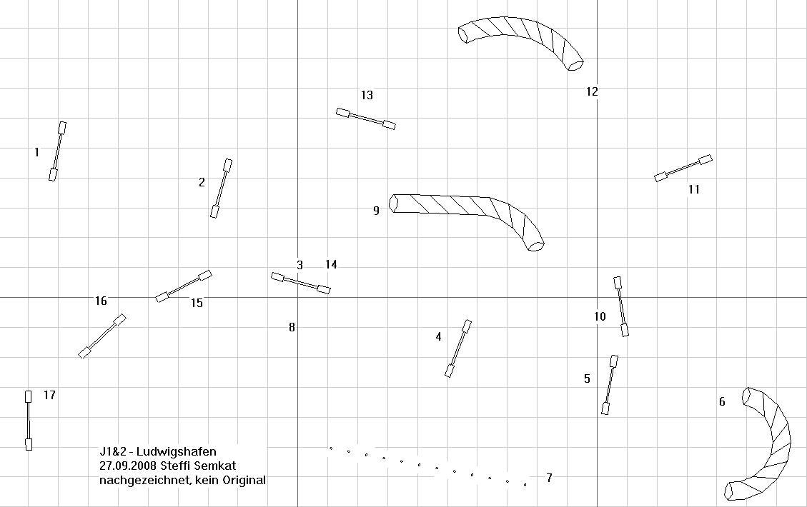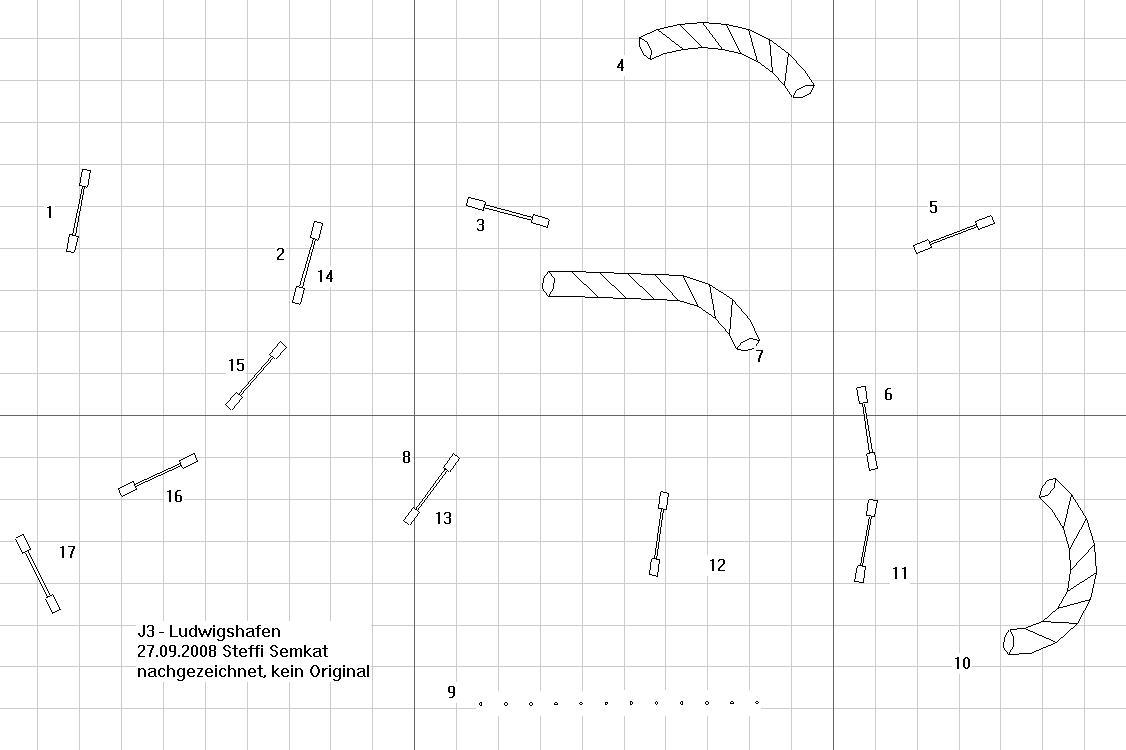 28.09.2008 VdH LudwigshafenAls Richter waren Michael Kanbach und Steffi Semkat vor Ort, von Michael stammten die A-Parcoure, von Steffi die Jumpings. Weil Laila mir deutlich zu verstehen gegeben hatte, dass sie gern mal wieder meine volle Aufmerksamkeit hätte, blieb Iuju ausnahmsweise mal Zuhause und Laila und ich machten einen Weibertag. Das sollte sich zumindest im A-Lauf auch auszahlen. A-Lauf: vor dem Anfang hatte ich ein wenig Respekt, 3 Sprünge und dann zielen, das liegt mir ja nicht wirklich. Aber da ich am Vortag Laila erstmals wieder ein Stück abgerufen habe, hab ich das gleich noch mal ausprobiert und es ging wider Erwarten recht gut. Der Parcours lag uns eigentlich, bis auf die Sequenz Richtung Wand, vor der ich eigentlich einen Belgier machen wollte, aber dann deutlich zu spät dran war und damit den Wandaufsprung kassierte. Allerdings als einzigen Fehler, und auch die Zeit war im Rahmen, also ein V. Jumping3: