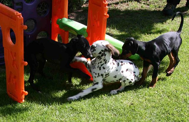 ------------03.Mai 2008--------------------- Mal wieder Welpengruppe. Ein Punktehund und eine Doberfrau kennengelernt.