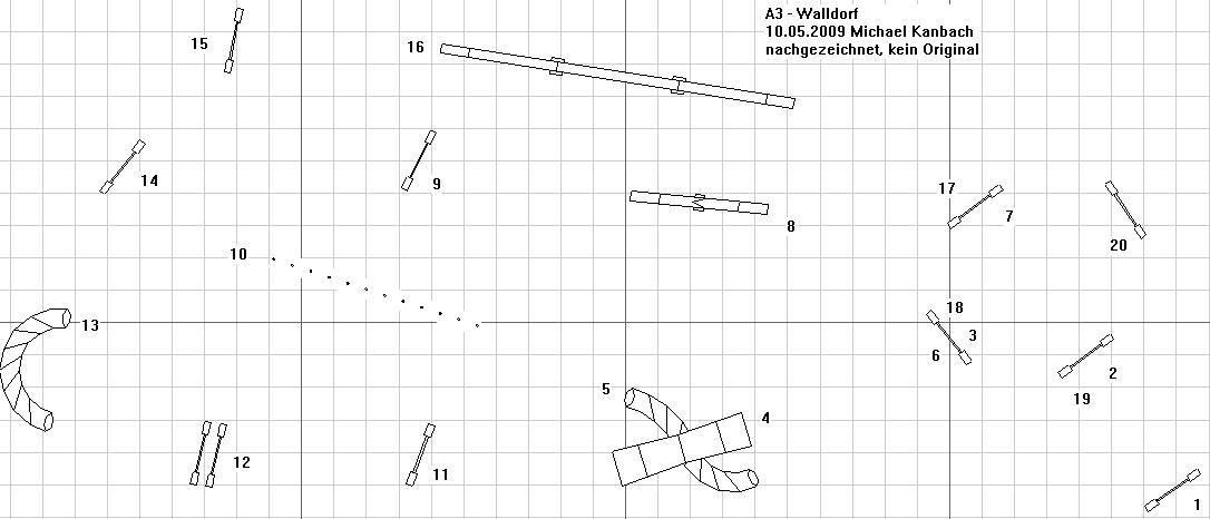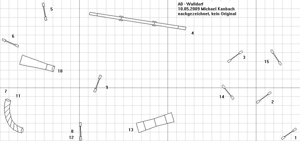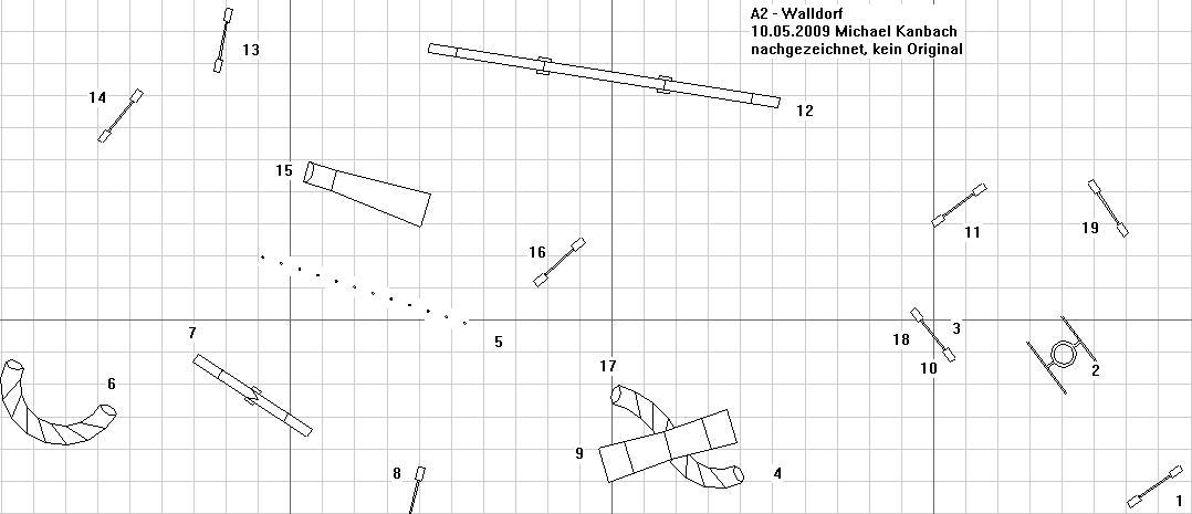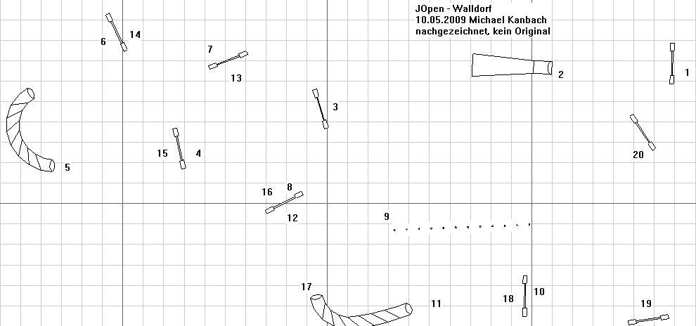 10.05.2009 VdH WalldorfEigentlich hatte ich Walldorf gar nicht im Programm, weil ich den 10.05. mit der Rennbahn in Münster eingeplant hatte. Aber da das Iuju noch nicht so weit ist, haben wir kurzfristig umdisponiert. Richter war Michael Kanbach, wie immer mit netten Parcouren mit dem gewissen Pfiff. A3-Lauf:
