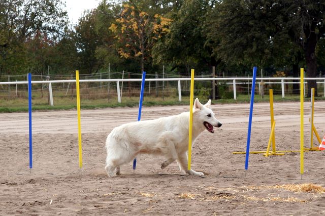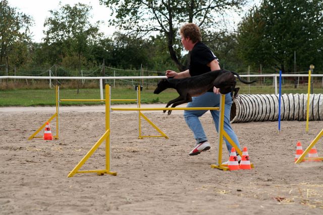 Wir freuen uns schon auf die Wintermonate, wo wir in der trockenen hellen Halle das Training abhalten können. Attilla im Slalom