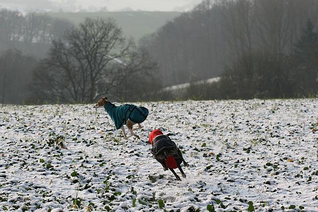 -------------------------------------------------------------------------------------------------------------- 19.12.2009 Bei knackig kalten -12° Celsius haben sich Iuju und Amy endlich mal wieder zum gemeinsamen Gassi-gehen getroffen. Gut eingepackt ins Mäntelchen sind wir losmarschiert.