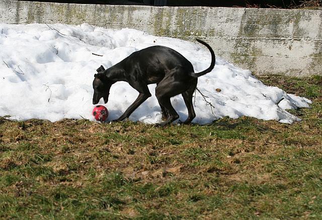 während Iuju versucht, ihren Ball in den Resten des grossen Schneehaufens zu verbuddeln