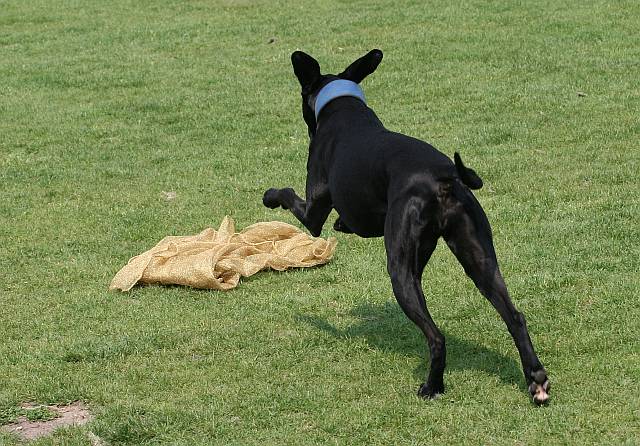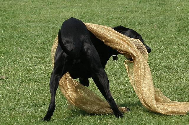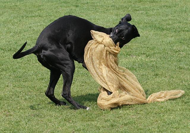 -------------------------------------------------------------------------------------------------------------- 03.05.2009 Training in Oberhausen Auch heute hat Iuju fleissig geübt, das Häschen zu fangen. Es macht ihr nun doch immer mehr Spass, tatsächlich den Felldummy zu jagen, statt nur der Maschine nachzulaufen.