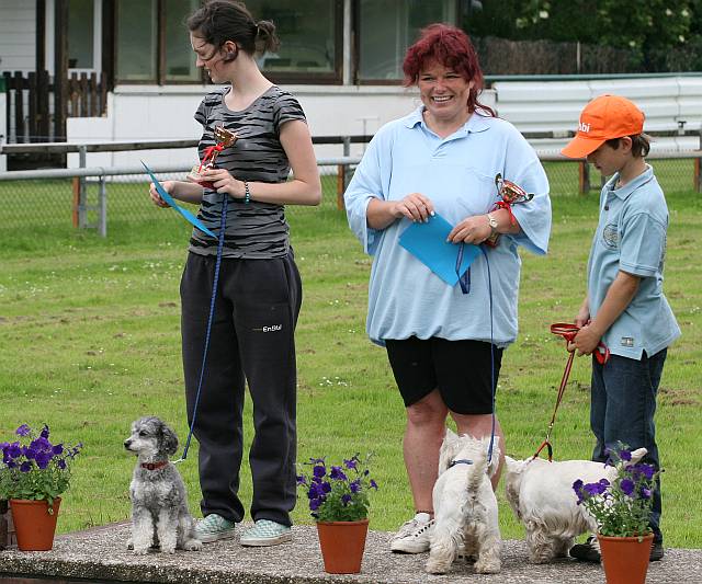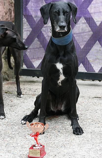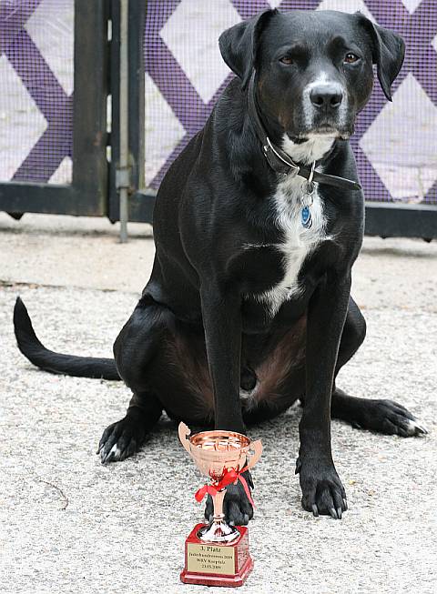 Und die Iuju - naja, in der Klasse Hunde zwischen 30 und 50 Zentimeter hat sie den ersten Platz gemacht. Und der Gesamttagessieg war ihr auch nicht zu nehmen :-)