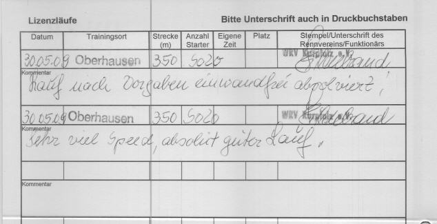 -------------------------------------------------------------------------------------------------------------- 30.05.2009 Oberhausen-Rheinhausen - Iujus erste Lizenzläufe