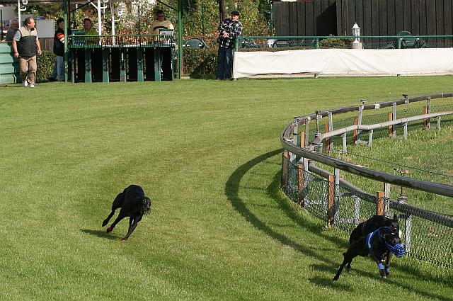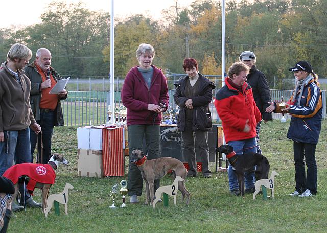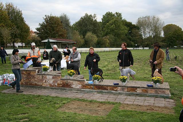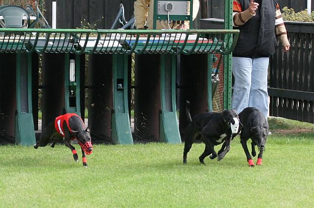 -------------------------------------------------------------------------------------------------------------- 04.10.2009 Training in Oberhausen, Iuju rennt wieder mit den grossen Jungs und zeigt, was sie gelernt hat. Diesmal dabei Easy und Mailò, also ein hübscher schwarzer Whippet-Lauf. Beim ersten Lauf musste Iuju (unter rot) gleich mal erfahren, dass sich die Buben Platz machen, auch wenn so eine kleine süsse Maus im Feld ist. Etwas verschüchtert lies sie sich ein wenig zurückfallen und lief dann laut schimpfend hinter den Buben her. Dieser Lauf endete für Iuju bei 23, 25 Sekunden.