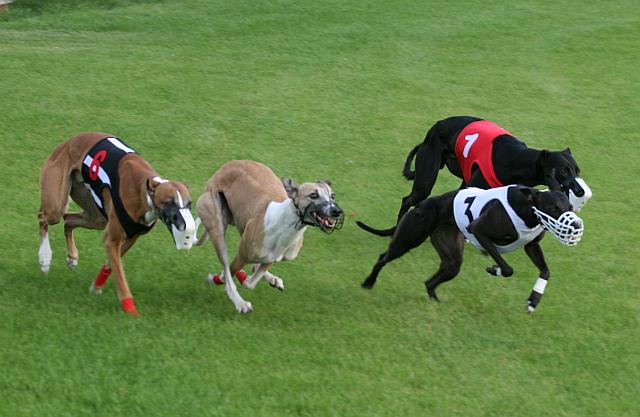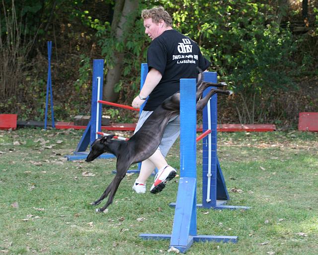 -------------------------------------------------------------------------------------------------------------- 20.09.2009 Training in Oberhausen, Iuju wird Vereinsmeister bei den Whippets, was ja auch ganz einfach war, weil sie die einzige offizielle Starterin war ;-) Trotzdem war es für Iuju (unter weiss) nicht ganz so easy, sie lief gegen 3 Grosse (Adonis, Alicia und Easy) und musste ganz schön kämpfen, weil es doch zu Anfang recht eng war, den kleinen Vorsprung, den sie sich am Start geschaffen hatte, musste sie sehr schnell abgeben.