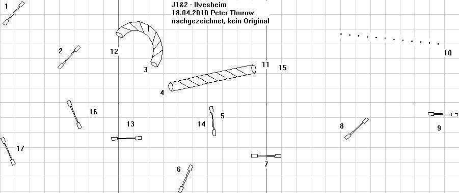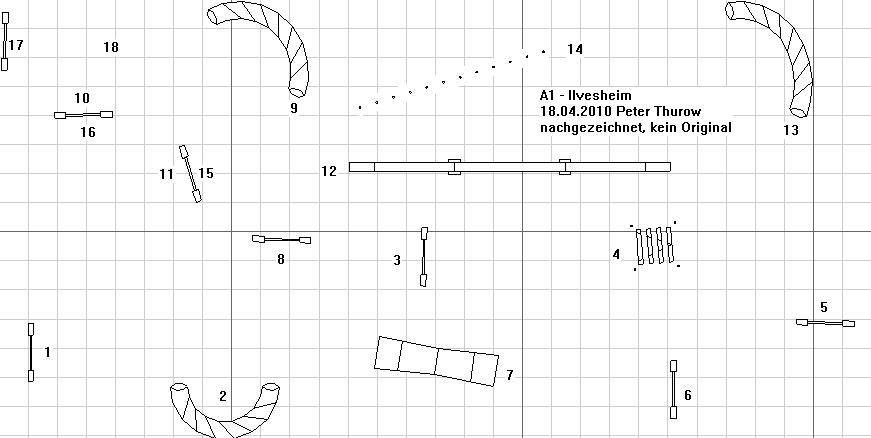 18.04.2010 IlvesheimIch hatte noch einen Startplatz für Iuju ergattert, also noch mal Ilvesheim. Gerichtet hat Peter Thurow mit seiner ersten Anwartschaft zum ALR, unter den Fittichen von Tanja Pollich. Ich hab nur den A-Lauf geschafft, danach musste ich weg, und bin zum Jumping knapp zu spät zurück gewesen, allerdings ohne das im Nachhinein sonderlich zu bedauern, denn den Jumping hätte ich voraussichtlich mit der Lütten eh nicht geschafft. A1-Lauf: nach dem Weitspung 4 habe ich einen Linksdreher von Iuju provoziert, weil ich Angst hatte, dass sie mir sonst den Sprung 5 nicht nimmt. Hat auch geklappt. Dann ging es flüssig weiter, bis zum Steg. Ich staunte Bauklötze, als Iuju auf einmal links am Stegaufgang vorbei lief, war mir keiner Schuld bewusst. Erst durch die Analyse des Videos wurde mir klar, was da passiert ist. Wer das Problem auch sieht, kann sich ja mal melden ;-) Etwas unkonzentriert weiter und Iuju den Slalom nicht gezeigt, noch ne Verweigerung, insgesamt ein SG