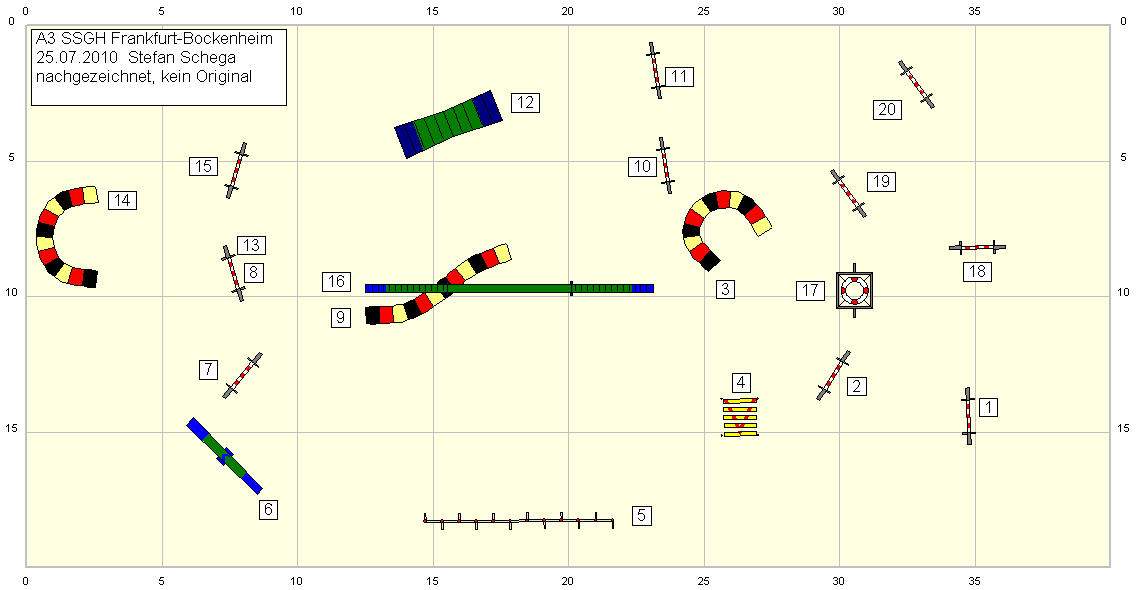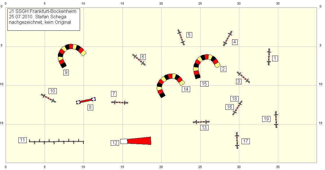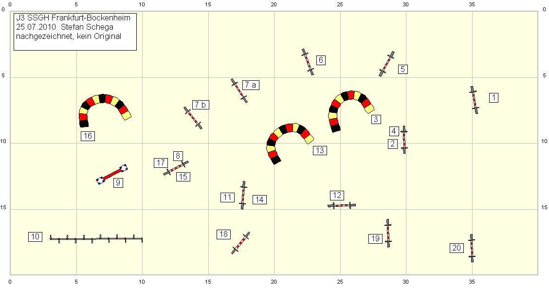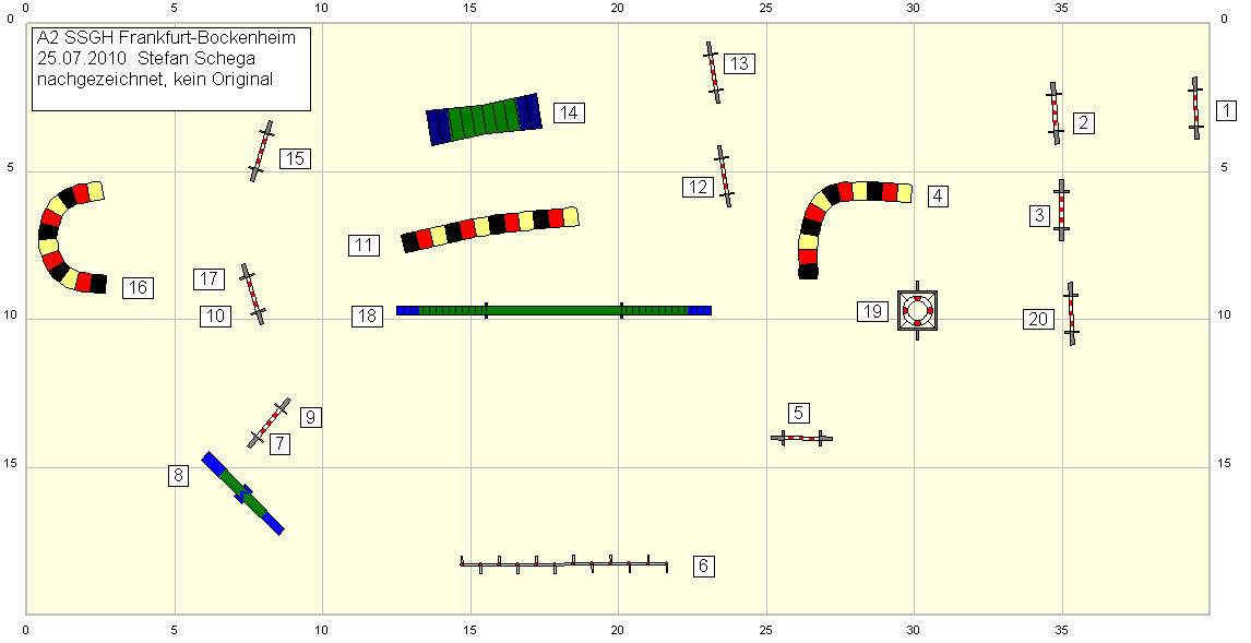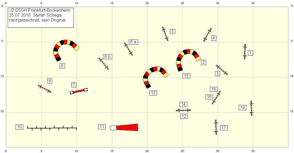 25.07.2010 SSGH Frankfurt-BockenheimUnser eigenes Turnier in Frankfurt, ich bin mit Iuju und Laila gestartet. Richter war Stefan Schega, mit ausgesprochen selektiven Parcouren aber sehr milder Richtweise. A1-Lauf: vier 180-Grad-Wenden im parcours, nicht mein Geschmack. Der Abstand von 4 auf die Tunnelverleitung gerade mal 5 meter, so weit springt die Kleine normalerweise schon raus. Naja, die Stelle hab ich dann noch geschafft, aber nach 7 machte Iuju einen Riesenbogen rannte von hinten in Tunnel 17 rein ;-) Also das erste TunnelDIS A3-Lauf: