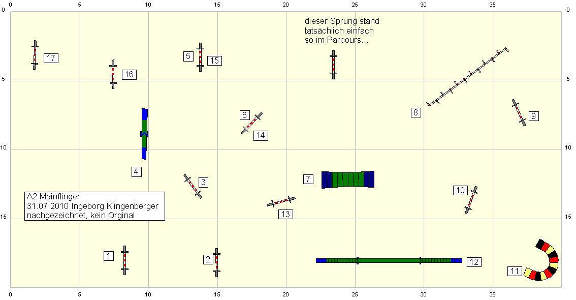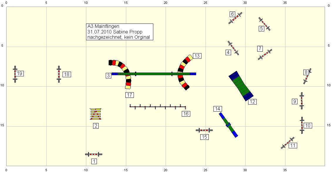 31.07.2010 MainflingenNoch einen Startplatz bekommen, das Turnier sollte erst 12 Uhr beginnen, im Sommer nicht die schlechteste Idee, für Samstags sogar super (ich denke da mal an die Leute,die Samstag morgens arbeiten müssen). Richter waren Sabine Propp (A3, J3 und Spiel 1&2 Large) sowie Ingeborg Klingenberger. A1-Lauf: was soll ich sagen, es war unmöglich, bei 11 oder 12 vor Iuju zu kommen. Der extrem kurze Abstand zwischen 12 und dem Tunnel 17 zwang mich zu einer energischen Intervention, ein Tick zuviel, so dass Iuju zwar 13 noch kriegte, dann aber zwischen 14 und Wand durchlief und dann 14 von hinten sprang. DIS Jumping 1&2: ein Rennspiel, bei dem ich eigentlich bei 7 vor Iuju sein wollte. War ich aber nicht ;-) Also alles auf Distanz von hinten geführt, und was soll ich sagen, die Maus hat es gemacht. Mm Ende Platz 3 von 58, nicht schlecht, oder?