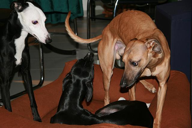 -------------------------------------------------zurück zu den News-------------------------------------------------Dezember 201031.12.2010 und zum Schluss, Jahresabschluss bei Familien Schneitler, liebe Gäste hatten ihre Fellnasen mitgebracht, und so konnten Iuju und Midi den Jahreswechsel mit ihren Brüdern feiern. Iuju mehr in der Rolle der Cheffin, und Midi gefiel sich eine ganze Zeit ziemlich gut als Animiermädel ;-) Midi mit Bruder Jo, den sie zieeemlich cool findet
