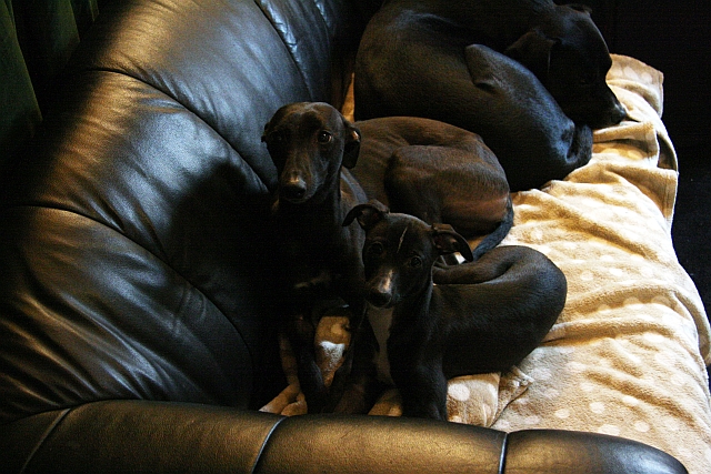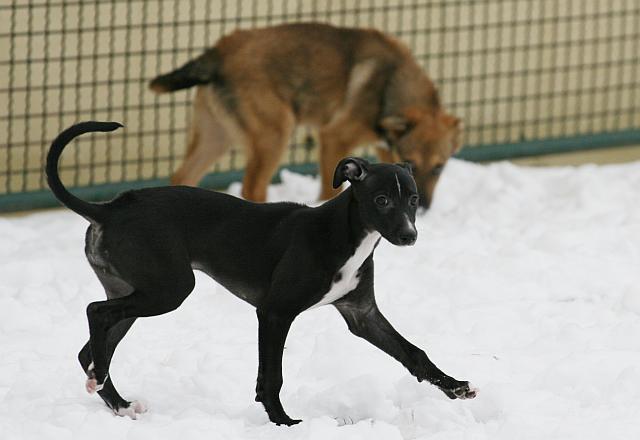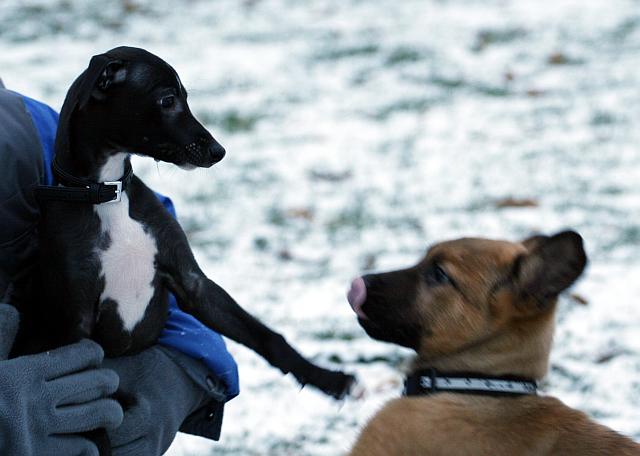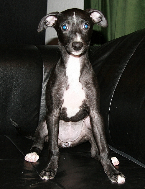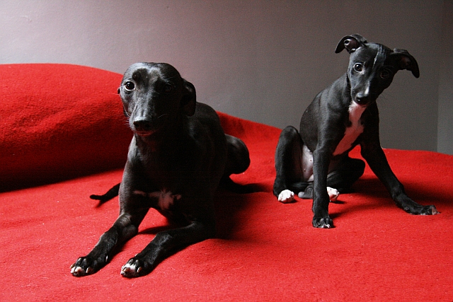 -------------------------------------------------------------------------------------------------------------- 03.01.2010 Ja, wir haben Zuwachs, wir verkünden stolz, dass wir nun die zwei schönsten kleinen Whippetmädchen der Welt bei uns haben! Iuju hat Verstärkung erhalten, ab sofort wohnt Ghan bury ghan's Mystique Midnight, genannt Midi, bei uns: