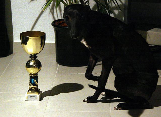 -------------------------------------------------------------------------------------------------------------- 10.01.2010 AI-WEB - Turnier Nummer 1, Iuju holt -------------------------------------------------------------------------------------------------------------- 06.01.2010 Traditionelles Drei-Königs-Hunderennen in Ladenburg Die grossen Mädels haben mal ein paar Stunden Babypause genommen und sind hingefahren, während die Jungs zuhause aufs Baby aufgespasst haben. In der Klasse "Hunde über 50 cm älter als ein Jahr" (da lasse ich auch die Iuju starten, weil sie doch immer über sich selbst herauswächst ;-) waren diesmal 27 Hunde am Start, Laila kam auf Platz 7 und Iuju hat gewonnen.