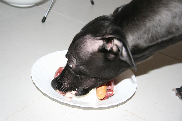 -------------------------------------------------------------------------------------------------------------- 21.01.2010 Happy Birthday Iuju! Unsere kleine grosse Flitzemaus wird heute 2 Jahre jung. Sowas muss natürlich gebührend gefeiert werden. Erst mal mit ner Geburtstagstorte, heute gab es eine Frischkäsetorte an Hähnchenherzen mit 2 Würstchen-Geburtstagkerzen.