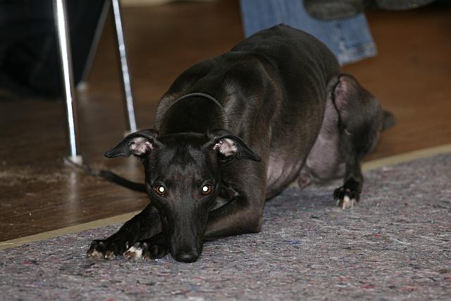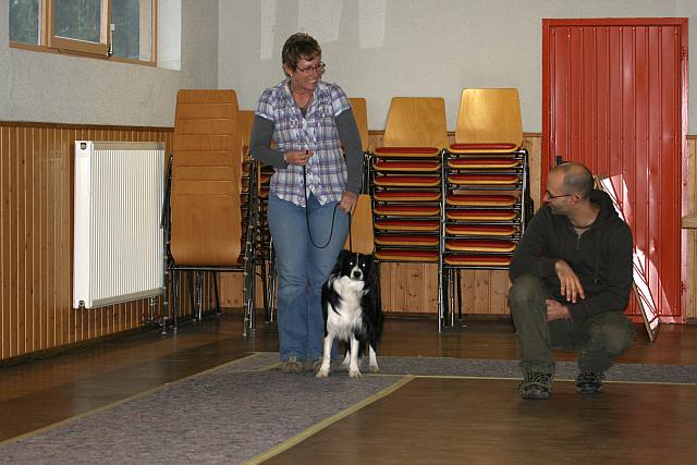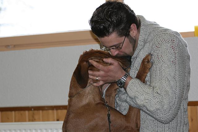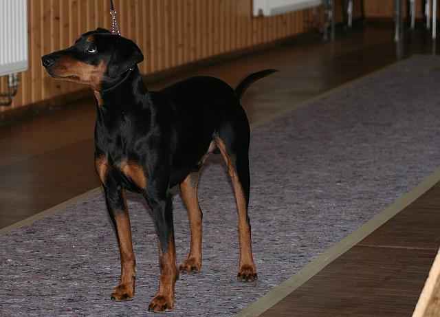 07.02.2010 Ringtraining in Malsch bei Uwe HofstaedtEigentlich hatte ich für jemanden aus einem Whippet-Forum bei dem Ringtraining-Seminaranbieter dogs-showtime.de nachgeschaut, aber dann gefiel mir die Idee selbst immer besser, und so habe ich mich angemeldet. Und was soll ich sagen, das Seminar war jeden Cent wert. Wir waren eine Mischung aus absoluten Anfängern und Leuten, die schon mehr oder minder oft ausgestellt hatten, und jedem von uns konnte Uwe deutlich weiterhelfen. Und Spass hat es auch noch gemacht. Meine Meinung : Prädikat sehr empfehlenswert! Fritz, der hübsche Deutsche Pinscher