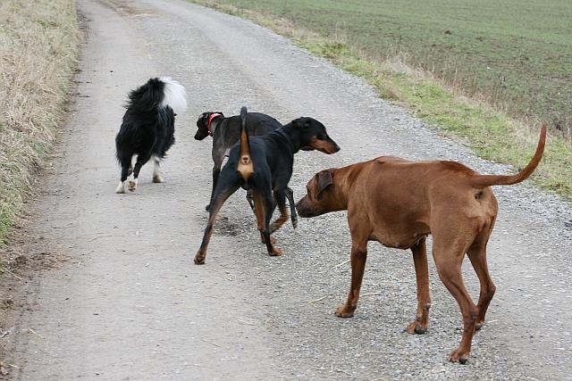 in der Pause gemeinsam Gassi gehen, Joy und Iuju sind geflitzt, der kleine Hannibal musste sich ganz schön anstrengen, um hinter den Mädels hinterher zu kommen