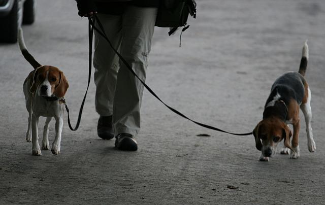 Das eine der Beaglechen bei der recht lockeren Startposition bei der "Flussüberquerung"