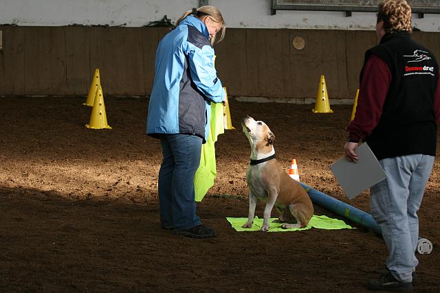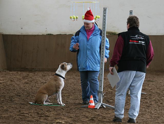 Aufgabe11: Reifen Hund steigt mutig und unerschrocken durch die 5 Reifen, ohne Reifen umzuwerfen oder auszulassen, dann gibt es volle Punktzahl