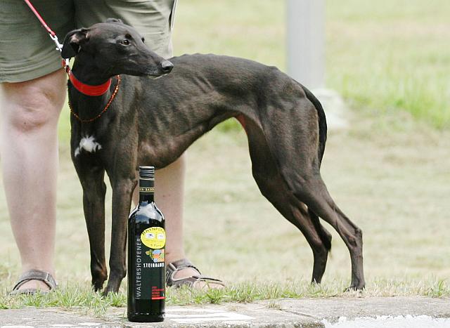 -------------------------------------------------------------------------------------------------------------- 07.08.2011 CACIB Ludwigshafen, Bericht hier Nach der Ausstellung durfte Midi noch die Iuju auf der Rennbahn besuchen, und wenn man schon mal da ist, dann darf man auch ne Runde drehen und sich anschliessend mit Iuju an der Bar einen Absacker genehmigen ![]() | ||