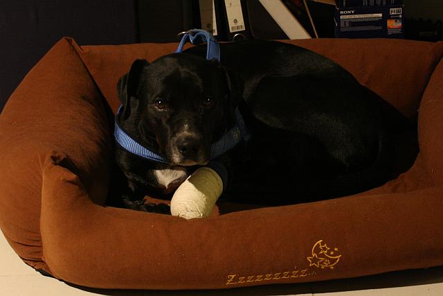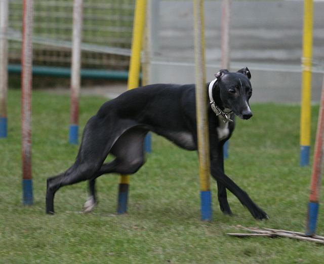 So ziemlich der gesamte Ballen ist abgezogen, dazu noch diverse andere Wunden, was halt so passiert, wenn man den Fuss unter ein fahrendes Auto steckt. Die Heilung wird lange dauern... -------------------------------------------------------------------------------------------------------------- 23.01.2011 Midi übt Agility sie ist fleissig am Slalom üben