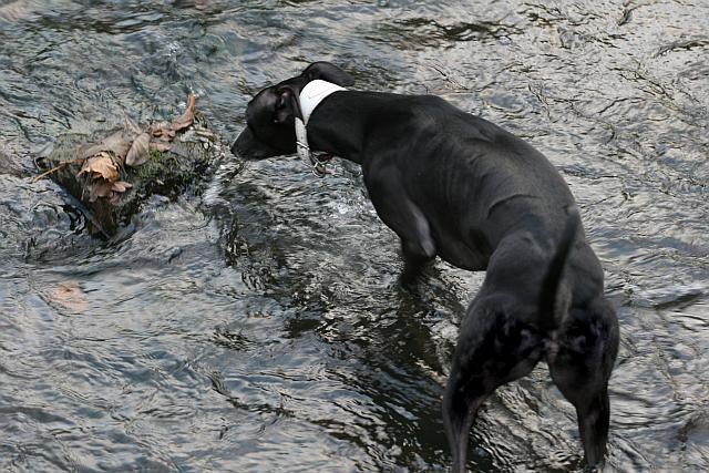 Midi hat trotz kühler Temperaturen den Weg zum Bach gesucht und gefunden