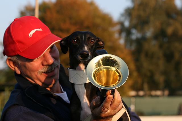-------------------------------------------------------------------------------------------------------------- 23.10.2011 Hubertusrennen in Oberhausen, Bericht hier Midi verpasst ganz knapp den Aufstieg in die A-Klasse, wird dafür aber Siegerin des Grasbahncups und gewinnt für ihren Trainer das Goldene Horn