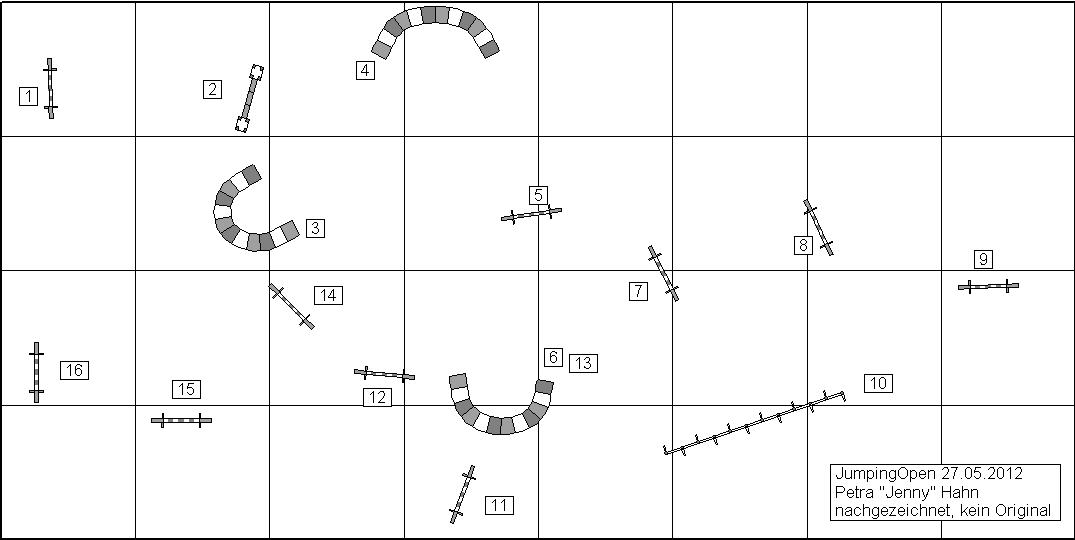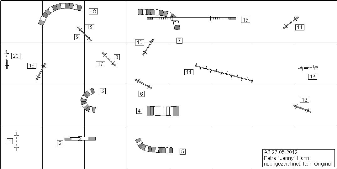 27.05.2012 KöppernNun, nach dem blamablen Auftritt am letzten Wochenende, war der Plan recht einfach- Nuller laufen und aufsteigen ;-) Bei Jenny laufe ich immer sehr gern, und ich hab nicht vergessen, dass ich vor fast genau 5 Jahren mit Laila bei ihr ins A3 aufgestiegen bin. Also habe ich mir ein wenig Hoffnung auf eine Wiederholung gemacht. Ich hab mich auch sehr gefreut, wieder ganz viele Leutchen aus meinem Frankfurt-Bockenheimer Verein zu treffen, auch wenn ich schon recht lange nicht mehr dort trainiere, ist es immer wieder schön, ein wenig zu schnacken und sich gegenseitig über schöne Läufe und Erfolge zu freuen. A2-Lauf Midi: Ok, das war quasi ein Frühstart, da werde ich noch mal ein wenig in die Mitarbeitergespräche gehen. Bei 3 hatte Midi den falschen Eingang angepeilt, liess sich aber noch von mir zurechtrücken. Der weitere Verlauf war meinerseits ein klein verspannt, Midi hat aber alles schön mitgemacht. Das war eine Erleichterung im Ziel, als Deutschlands bester Agility-Moderator Gert dann sagte: fehlerfrei! Tja, und da war sie im A3, die kleine Maus. V0, Platz 1 ![]() Jumping1+2 Midi: Naja, wie das so ist am Aufstiegstag, da muss man es noch mal so richtig knallen lassen! Der Parcours war wie für uns gemacht, Midi ist gerannt und hat schön aufmerksam nach mir geguggt. Da meine Anspannung nun auch weg war, war das ein harmonischer Lauf, an dem ich nur wenig zu meckern habe. Als dann Gert auch noch "neue Bestzeit" rief, wusste ich (da wir die drittletzten Starter waren), dass wir mit Sicherheit auf dem Treppchen stehen. Letztendlich war es dann das V0 auf Platz 1 von 42 Startern. ![]()