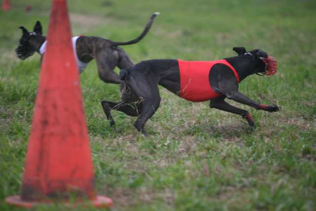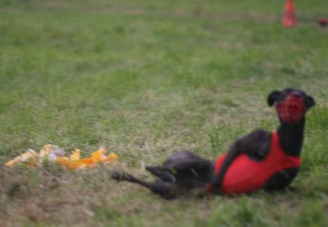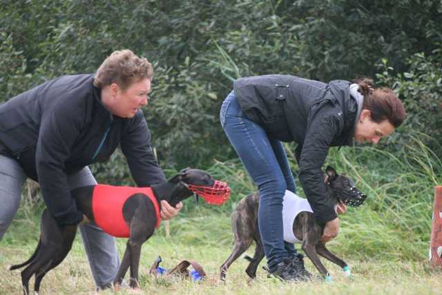 22.09.2012 Iuju beim DCS Berlin 2012Achja, manchmal kommt eben alles anders als geplant. Eigentlich wollte ich die Fahrt nach Berlin mit ein paar Verwandschaftsbesuchen kombinieren. Aber schon auf der Hinfahrt, die mich fast den ganzen Tag gekostet hatte, habe ich mir einen Abstecher verkniffen, weil ich sonst einfach viel zu spät im Brandenburgischen Outback eingeritten wäre. Deshalb stand der Familienbesuch nun auf der Liste des nächsten Tages, aber auch daraus sollte nichts werden. Iuju war super gut drauf. Am Vorabend spielte sie mich ständig an, um mich zur Scheinjagd auf den Wiesen der Umgebung zu animieren. Grinsend warf sie mir immer wieder ihren Ball zu, den sie sich extra ins Reisegepäck gelegt hatte. Ich war also recht guter Dinge für das Coursing. Als Mitkonkurrentin war uns für den ersten Lauf Culann's Kimba Lee zugeteilt, Iuju zeigte meines Erachtens nach nicht unbedingt ihre volle Stärke, trotzdem bekamen beide Hündinnen jeweils 78 Punkte. Zum zweiten Lauf wurde Iuju abermals gegen Culann's Kimba Lee gesetzt, warum auch immer das in einer Konkurrenz von 15 Hündinnen, bei denen 3 Hündinnen mit 78 Punkten aus dem ersten Lauf kommen, notwendig sein sollte. ![]() Widersprüchliche Ansagen über den Beginn des zweiten Durchgangs (mal hiess es, 12:30 Uhr geht es weiter, dann wieder, 13.00 Uhr, einmal sogar "das werde Ihr schon sehen") führten dazu, dass wir recht frühzeitig vor unserem Lauf Richtung Start gingen. Ich hatte zum Whippetmantel sogar noch einen Decke bei mir, weil ein sehr kalter stürmischer Wind aufzog, und ich Iuju unbedingt warm halten wollte. Direkt zu Beginn der Whippetläufe fiel dann der Strom aus, mit dem die Coursingmaschine des Parcours 2 angetrieben wurde. Es dauerte über eine dreiviertel Stunde, bis man bemerkte, dass ein umgefallener Scheinwerfer einen Kurzschluss verursacht hatte, der die Veranstaltung auf diese Weise ordentlich unterbrach. Leichter Nieselregen setzte ein. Es ist wohl auch etwas am Hasenzug umgestellt worden, jedenfalls durften wir die Hunde ewig lange nicht loslassen, der Hase war schon fast ausser Sicht, als endlich das "Los" kam. Alles in allem keine idealen Bedingungen. Naja, und kurz nach dem Start hörte ich meine Iuju wie üblich nach dem Hasen kreischen, allerdings in einer ungewohnten Tonlage. Auch war sie in diesem Lauf deutlich langsamer als Kimba Lee, und im Ziel lief sie dann nur noch auf 3 Beinen. ![]() ![]() Danke an Marc-Udo Wrage für die zwar zwar nicht hammerscharfen aber doch recht aussagekräftigen Bilder Die Tierärztin hat sich freundlicherweise umgehend um mein Mädchen gekümmert und in der linken Schulter am Trizeps einen Anriss oder eine Zerrung diagnostiziert. Ich hab Iuju also ausgelaufen, ausgelaufen und ausgelaufen, gewässert und dann warm eingemummelt zum Schlafen gelegt. Später habe ich dann noch den Termin bei Tony Gallagher wahrgenommen, der Iuju noch einmal sehr gründlich untersucht und dabei auch auf der rechten Seite ein gereiztes Band am Unterarm gefunden hat. Mit genauen Handlungsanweisungen versehen hab ich meine Kleine wieder mitgenommen, in der guten Hoffnung, dass all diese Verletzungen wieder ausheilen und Iuju nächstes Jahr sicher wieder beim Coursingzirkus mitrennen darf. Nachdem die Läufe gegen 16 Uhr rum waren, hiess es nur noch warten auf die Siegerehrung. Die war dann auch schon 17:45 Uhr, und mit dem Abspielen der Landeshymnen der Bundesländer der jeweiligen DCS verbunden. Diese Ehrung zog sich so bis 19:00 Uhr, und ich glaube, effektiver kann man mich nicht davon abhalten, noch einmal so weite Strecken zu einer Veranstaltung zu fahren. Iuju und ich haben dann also kurz nach 19:00 Uhr den Heimweg angetreten, und da ich trotz meiner maladen Bandscheiben nonstop durchgefahren bin, waren wir tatsächlich kurz nach 1:00 Uhr zu Hause. Iuj konnte so wenigstens im eigeen Bett schlafen. Dafür, dass Iuju mit diesen oben beschrieben Verletzungen noch gelaufen ist, war ihre Bepunktung nicht mal so schlecht. Zwar kam sie nun nur auf Platz 13 von 15, aber war damit noch punktgleich mit 3 anderen Hündinnen. |