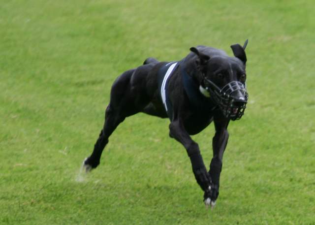 welches Schnuffi mit nur 0,05 Sekunden Vorsprung gewann. Da Bamboucha im anderen Vorlauf noch weitere 0,02 Sekunden hinter Midi war, zog Midi unter Blau ins Finale. Beim Finale dann das alte Spiel, Midi startet spät, holt auf, überholt alle, und lässt sich kurz vor dem Ziel in der Kurve nach aussen tragen und überholen. Auch hier wieder nur sehr knapp, Bamboucha siegte mit 23,38 und Midi war in 23,40 Sekunden als Zweite im Ziel. Schnuffi kam auf Platz 3. Sehr erfreulich: direkt im ersten A-Klasse-Rennen holte sich Midi das CACIL!