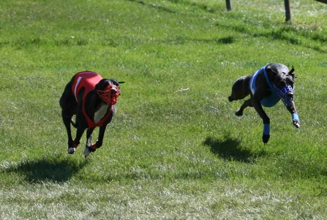 02.09.2012 LorchLeider nur 3 Hündinnen in der A-Klasse, ausser Iuju und Midi hoppelte nur Schnuffi mit. Also nur einen Vorlauf, und da Schnuffi sich offensichtlich nicht wohl fühlte, wurde sie für das Finale zurückgezogen und die beiden Flitzepfoten stritten allein um den Sieg. Und das taten sie diesmal wirklich vehement, normalerweise ist Midi ja ein klitzekleines bissl schneller als Iuju, aber Iuju schenkte ihr diesmal keinen Meter, und der Zieleinlauf war so megaknapp, dass ich es ausserordentlich bedauere, dass da die Zeitnahme nicht geklappt hat.