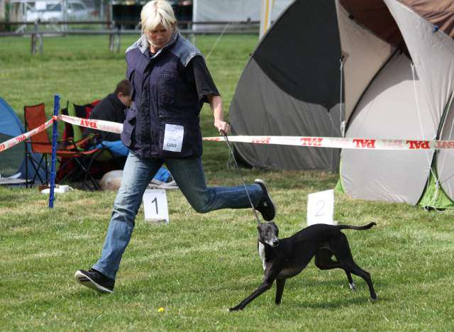 19.04.2014 CAC OberhausenAlle Jahre wieder ;-) Diesmal mit Judit Szanka (Dévaj Whippet) aus Ungarn als Richterin. Zuerst durfte ich Midis Bruder Jo handeln, den ich mit einem V1 aus dem Ring begleiten durfte. Dann hatte ich dummerweise beide Flitzepfoten in der Gebrauchshundeklasse, aber glücklicherweise fand sich Anette bereit, das Midi im Ring rumhüpfen zu lassen, so das ich das Mimöschen Iuju selber handeln konnte.