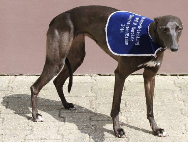 Krimiautor zu haben, sie machts mal ganz spannend und holt sich -------------------------------------------------------------------------------------------------------------- , Midi kommt auf Rang 7, Bericht hier![]() -------------------------------------------------------------------------------------------------------------- 20.04.2014 Grasbahnmeister in Oberhausen, Midi holt sich , Iuju holt sich , Bericht hier![]() -------------------------------------------------------------------------------------------------------------- 19.04.2014 CAC in Oberhausen, Midi holt sich ein V2, Iuju ein V3, Bericht hier ![]() -------------------------------------------------------------------------------------------------------------- 07.04.2014 Und da ist sie nun, Iujus Urkunde über den C.I.C.: ![]() Damit ist Iuju nun "Internationaler Renn/Coursingchampion" (so ganz klar definiert ist das ja nicht, der Titel ist nicht getrennt nach Rennen und Coursings, und Iuju hat für die Erfüllung der Bedingungen sowohl CACILs aus dem Renn- als auch aus dem Coursingbereich geliefert) -------------------------------------------------------------------------------------------------------------- 05.04.2014 Iuju und Midi beim Enderle-Cup in Ketsch, Bericht und Parcourspläne hier ![]() | ||