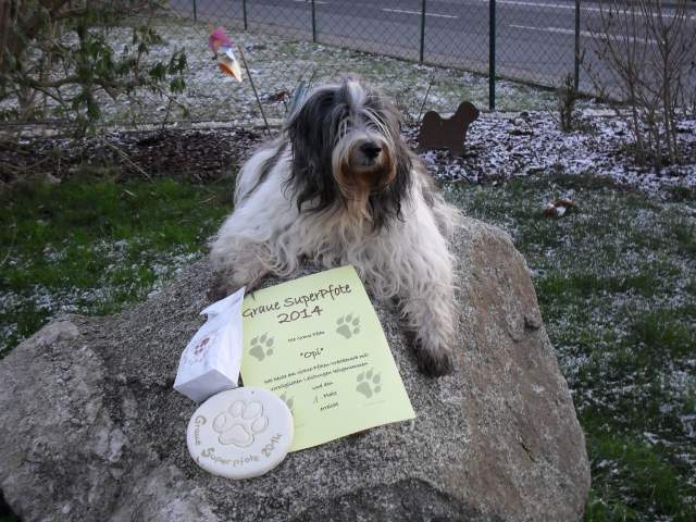 Stelle nur das Foto des Gewinners der Klasse "GrauePfoten", "Opi" von