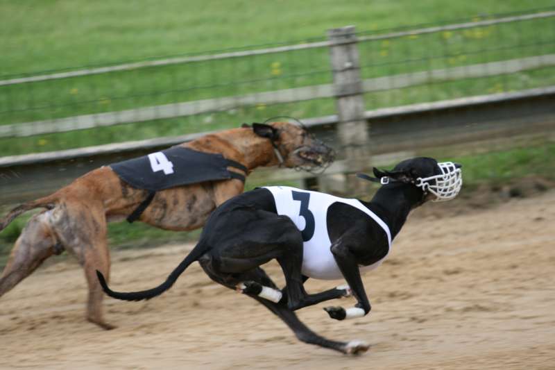 09.08.2014 internationales Gewichtsklasserennen GelsenkirchenAch je, wo fange ich an zu erzählen? Also, bei den Whippets gibt es grosse und kleine Hunde, und schnelle und langsame.... Einige Besitzer der langsameren Hunde wollten gern auch mal ganz vorn auf dem Treppchen stehen, und alsbald riefen sie "das XYZ gewinnt, liegt nur daran, das er viel zu gross ist! XYZ ist gar kein echter Whippet!" Und so begann man vor vielen vielen Jahren damit, die Hunde zu messen, und wer ein bestimmtes Maß überwuchs, der wurde "aussortiert". Früher bedeutete das den generellen Ausschluss von Rennen (sogenannter "Züchterschrott"), später durften diese grossen Whippets gnädigerweise in einer Sonderklasse teilnehmen, allerdings ohne die Möglichkeit, die selben Titel zu erringen wie die "echten" Whippets. Und dass, obwohl sowohl die grossen als auch die "echten" Whippets die selben gültigen FCI-Ahnentafeln hatten, die sie als echten Whippet auswiesen. Bei keiner anderen Hundesportart gab es eine derartige Regelung, und im Rennsport waren auch nur die italienischen Windspiele von der selben Regel betroffen, kein anderer Hund der Gruppe 10 wurde Ähnlichem ausgesetzt. Begründet wurde das ganze mit dem Anspruch, dadurch die Grösseneigenschaft der Rasse positiv zu beeinflussen. Wohlgemerkt, von Tierschutz war dabei von Anfang an keine Rede. Und das Ganze begann vor etwa 90 Jahren, und man sieht heute ja, wie exzellent diese Whippetmessungen geeignet waren, das Größenproblem innerhalb dieser Zeit in den Griff zu bekommen. Die Besitzer kauften sich also ein 8-12 Wochen altes Hundekind, lebten nun die nächsten 10-12 Monate in der ständigen Angst, dass dieses Hundekind über das festgelegte Maß darüberwuchs, und einige besonders ehrgeizige Besitzer begannen, mit ihren Hunden das "Messen" zu üben. Einige übten nur das Stillstehen, andere versuchten, ihre Hunde mit mehr oder minder netten Mitteln dazu zu bewegen, "in die Schulter zu gehen", um beim Messen unter dem Kontrollmaß zu bleiben. Einige besonders "kulante" Messrichter begannen, alle Augen zuzudrücken, wenn einige Hunde sich beim Messen merkwürdig hinstellten, um die begehrten 6 mal "Grün" zu sehen. In einigen FCI-Ländern gab es hingegen nicht mal Messungen, und in anderen wurde wohl auch nur grob geschätzt oder in Abhängigkeit vom Zwingernamen ein Maß ermittelt, und schupps waren alle Hunde in der A-Klasse. Irgendwann konnte man an jedem Sattelplatz im In-und Ausland sehen, dass die Wideriste der "kulant" gemessenen Hunde deutlich über die Kniescheiben ihrer Besitzer hinausragten. Die Besitzer der tatsächlich unter dem Kontrollmass befindlichen Hunde waren darüber nicht glücklich, denn zumeist verfügte so ein grosser Hund auch über das entsprechende Gewicht, und wenn es im Rennverlauf zu Kollisionen kam, zog der leichte "Zwerg" für gewöhnlich den Kürzeren. Und so begab es sich im Jahre 2013, dass die CdL (FCI-Kommision für den Windhundesport) bei der Renn-EM in der Schweiz in Versoix eben mal alle Whippets und Windspiele einer Kontrollmessung unterzog. Viele gemeldete Hunde reisten daraufhin gar nicht erst an, andere reisten an und fuhren nach der Messung wieder nach Hause. Dass es auch hier "menschelte", war irgendwie klar, wurde doch genau die selbe alte Messmethode (Galgenmessung) wie in den letzten Jahren verwendet. Dass es im Jahre 2013 schon möglich gewesen wäre, eine berührungsfreie Lasermessung durchzuführen, dazu fehlte den Verantwortlichen wohl das Vorstellungsvermögen. Nichts desto trotz durften auch die in Versoix ausgemessenen Hunde weiterhin in ihren Ländern in der A-Klasse starten, und davon wurde auch reichlich Gebrauch gemacht. Das Wort vom "zahnlosen Tiger FCI" ging um...Ab dem Jahr 2014 verfielen dann einige Länder darauf, innerhalb ihrer Nation doch noch mal ganz genau nachzumessen. Einige taten das so gründlich, dass es dann doch wieder eine (gegen die Regeln der FCI verstossende) "Ausschussklasse" gab (also ein Mass, was eine Nichtzulassung zum Sport für gänzlich gesunde Hunde mit FCI-Papieren bedeutete), andere Länder machten die Teilnahme an Titelrennen von einer Kontrollmessung abhängig. Und die wurde dann wieder so durchgeführt, wie all die Jahre zuvor... Und dann tauchten zu allem Überfluss in 2013/14 noch die "Jungen Riesen" auf, Whippets, federleicht, aber deutlich über dem Maß. Alle mit FCI-Papieren! Die mussten nun mit den herkömmlichen schweren zu grossen Whippets laufen. Es gab neben den Standardfanatikern und "Grippet"-Rufern aber auch ein Grüppchen besorgter Whippetbesitzer, die sich ernsthaft Gedanken um die Gesundheit ihrer Hunde machten, wenn ihre Hunde mit enormen Gewichtsdifferenzen laufen mussten. Und so kam die Idee der Gewichtsrennen wieder auf, es gab da bereits 1997 einen Versuch im Osten Deutschlands, der aber wohl wegen praktischer Erwägungen oder verbandsinterner Querelen nicht weiter verfolgt wurde. Nun, am nötigen Equipment mangelt es in den letzten Jahren nicht mehr. Beim Whippetmeeting 2012 hatte ich mich daher erboten, im Rennjahr 2013 beim WRV Kurpfalz fakultative Probemessungen durchzuführen, damit wir überhaupt erst einmal wussten, mit welchen Daten wir da zu rechnen hatten. Und in 2014 war es dann soweit, unter der Leitung von Dunja Baensch und Tobias Sicking wurde in Gelsenkirchen das erste "International Weight Class Demo Race" geplant. Das internationale Ausland war auch stark interessiert, die Tschechen zogen nach und mieteten die Greppiner Bahn in Roitsch, um dort ebenfalls einen "Friendly Cup" zu ziehen (dort seit 9 Jahren Tradition, 2011 auch schon einmal in Greppin, allerdings mit nur 3 festgelegten Gewichtsklassen). Für uns war es Ehrensache, in Gelsenkirchen an den Start zu gehen! Midi hat irgendwie in dieser Woche noch mal Gewicht zugelegt. Obwohl ich streng darauf geachtet habe, muss sie irgendwo noch was zu Fressen klar gemacht haben, denn statt der erwarteten 14,5 Kilo zeigte die Waage 14,85 an :-) Egal, sie war ja eh für die Mi