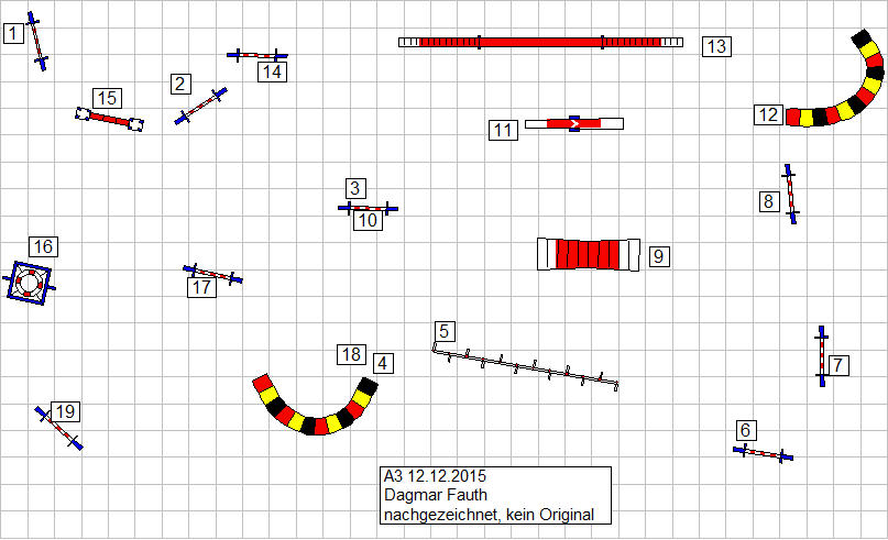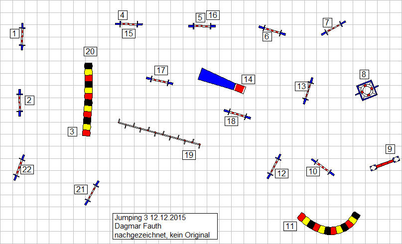 Bodenbelag, neuen Geräten, es hat Spass gemacht, dort zu laufen! Und als Richterin seit langem mal wieder Dagmar Fauth, da habe ich mich auch darüber gefreut, Dagmars Parcoure sind immer sehr nett zu laufen. A3-Lauf Midi: Ach, war das herrlich, Wannd 100%ige Zone, Wippe 100%ige Zone, Steg 100%ige Zone, ich habe mich so gefreut, dass ich sie prompt am Sprung nach dem Steg von der falschen Seite springen lassen haben :-) DIS Jumping3 Midi: Da hat die Dagmar doch tatsächlich den Sacktunnel reingestellt? Wir A3er haben größtenteils schwer geschluckt, kaum einer trainiert das verhasste Ding noch regelmäßig, auch bei mir dürfte er ein dreiviertel Jahr lang nicht im Training gestanden haben. Aber letztendlich war er nicht das Problem, Midi war bis zur 11 fehlerfrei, und dann nahm sie statt der 12 die 10. DIS ![]()