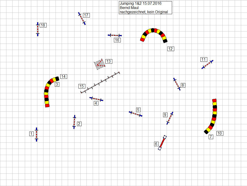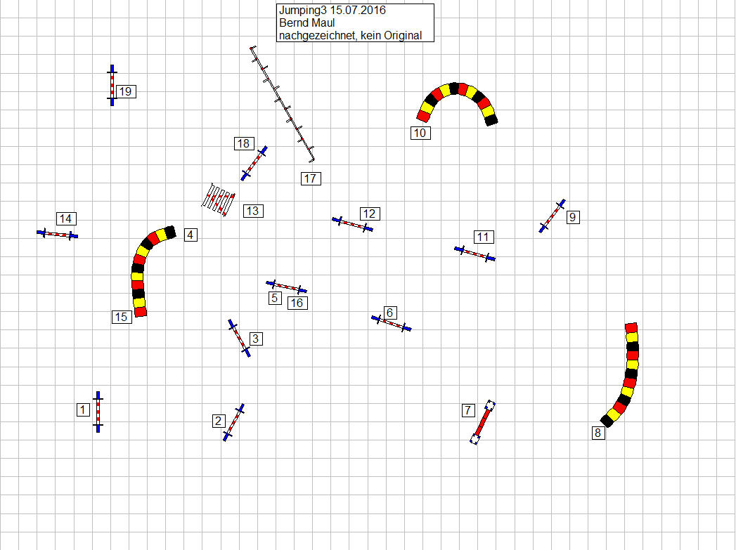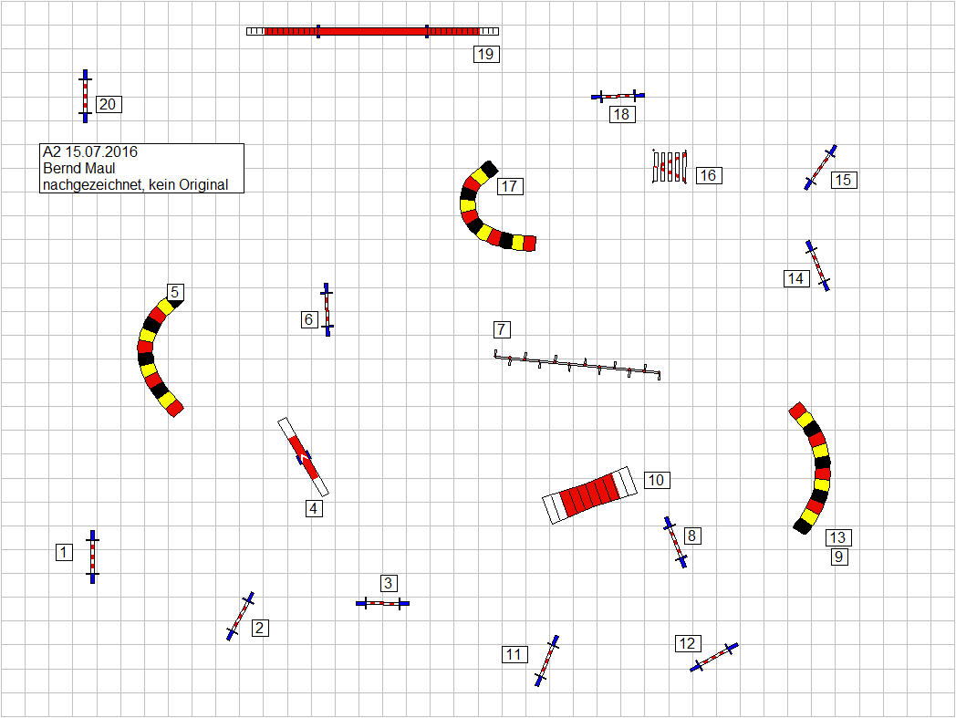 geplant. Richter sollten dieses mal Alex Beitl und Bernd Maul sein. A2-Lauf Iuju: Der Parcours machte mir ziemliche Bauchschmerzen. Abgesehen von der scheinbar unlösbaren Aufgabe, Iuju an gleich 2 Tunnellöchern vorbei zur 8 zu führen, habe ich die kurze Entfernung zwischen 14 und 15, die effektiv nur 3 Meter betrug und somit für Iuju gerade mal ein "in-out" war, gefürchtet. Aber erstens kommt es anders, und zweitens, als man denkt :-) An den Tunnellöchern vorbei, die 8 gesprungen und dann habe ich zuwenig geholfen und Iuju kam rückwärts über die 8 zurück, den Rest des Parcours habe ich dann frei Schnauze gemacht :-). DIS A3-Lauf Midi: Holla, da hat das A3-Volk gestöhnt. Die Knackstelle war ganz klar von 8-10, die, die den Slalomeingang fehlerfrei hinbekommen haben, gurkten an der Wand vorbei zur 10, und die wenigsten davon erfolgreich. Die DIS-Quote betrug 77%, nur ein Starter überlebte diesen Parcours fehlerfrei. Auch uns hat es erwischt, Slalom haben wir noch getroffen, aber danach war ich für Midi so unklar, dass sie den Tunnel der 10 vorzog. Immerhin zeigte sie mustergültige Zonen, und der Turniertag war ja auch als Zonentraining gedacht :-). DIS Jumping3-Lauf Midi: Der Jumping war ganz lustig, wenn der Platz gerade gewesen wäre und nicht alles auf Maximalabstand gestellt worden wäre, wäre ich sogar recht gut hinterhergekommen, so machte irgendwann die Lunge dicht und ich musste mich auf Midi verlassen, die aber brav gearbeitet hat. Auch hier gab es eine DIS-Quote von 72%, wir sind aber fehlerfrei auf Platz 6 von 39 gelandet , V0 Jumping1&2 Iuju: Das Spiel fand erst so gegen 22 Uhr statt, der Boden hatte angezogen und die Tunnel waren innen wohl recht nass, aus der 7/10 ist sie jeweils ewig nicht rausgekommen, wohl ausgerutscht :-( , Trotzdem fehlerfreier Lauf auf Platz 4 von 17, V0 ![]() ![]()