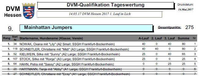 Jahre jung! --------------------------------------------------------------------------------------------------------------![]() ----------------------------------------------------------------------------------------------------- 25.05.2017 Jederhundrennen in Oberhausen, Iuju ist in der Handikap-Klasse gestartet und hat Platz 3 (von 4) erreicht) ![]() ----------------------------------------------------------------------------------------------------- Das Wunder von Bern Lotzwil! Ecstasy hat sich für die Teilnahme an der Coursing EM 2017 in Lotzwil (Schweiz) qualifiziert! Das Baby darf den geliebten schweizer Hasen wieder besuchen, und diese Mal in offizieller Mission! ![]() Wer hätte gedacht, dass sie mit darf? Und dann noch auf Rang 1... ----------------------------------------------------------------------------------------------------- 14.05.2017 Agility in Lich, der erste Lauf zu DVM, Bericht und Parcourspläne hier Midi liefert 2 Nuller und hilft der Mannschaft auf Rang 9 ![]() ----------------------------------------------------------------------------------------------------- 13.05.2017 Agility in Heidelberg, Bericht und Parcourspläne hier ----------------------------------------------------------------------------------------------------- 07.05.2017 Rennen in Freiburg, Midi holt sich bei den Senioren und
