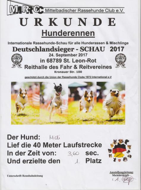 der Dissidenz --------------------------------------------------------------------------------------------------------------![]() Midi darf das Hunderennen gewinnen (Ecsy musste dieses Mal ausser Konkurrenz laufen, um die anderen Teilnehmer und vor allem ihre Tante Midi nicht ganz zu verprellen )![]() ![]() ----------------------------------------------------------------------------------------------------- 17.09.2017 Deutscher Coursingsieger Volkmarsen, Ecsy holt sich , Bericht