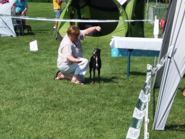 21.04.2018 CAC OberhausenEinfach mal so - die Mädels ausgestellt :) Midi war das erste Mal in der Veteranenklasse unterwegs und Ecsy durfte als gebrauchtes Mädel vortanzen. Hier die Bewertung für Midi von Frau Reinel-Gebauer (D) (Wertnote V1, Veteranen-CAC, Vet.-VDH): 8 1/2 schwarz,
