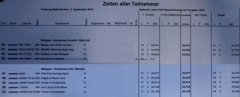 sind. Schon am Vorabend erreichte uns ein Bild der Teilnehmerliste, und ich habe der Mupfel gesagt, dass sie am nächsten Tag den dritten Platz machen wird :) Iuju und Midi waren natürlich auch dabei, Iuju hat in der Pause fleissig mit ihrem Reifen gespielt, und Midi hat die Anwesenheit von Tony Gallagher genutzt und sich mal wieder so richtig durchknuddeln lassen :) Doch zurück zu Ecsys Rennen: Erster