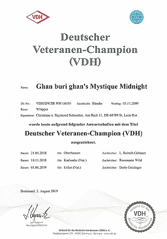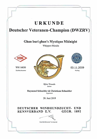 der B-Klasse losgehen! --------------------------------------------------------------------------------------------------------------![]() ----------------------------------------------------------------------------------------------------- 29.08.2019 Emma übt Agility, natürlich noch weit weg von jeder Perfektion, aber sie hat Spaß und ist sehr arbeitswillig ----------------------------------------------------------------------------------------------------- 24.08.2019 Whippet-Jahresausstellung in Lorch, Ecsy holt sich das SG4 bei den gebrauchten Hunden, Bericht hier ![]() ----------------------------------------------------------------------------------------------------- 20.08.2019 3 Whippets bei den GrauenPfoten ----------------------------------------------------------------------------------------------------- 18.08.2019 Iuju hat mit mir im Schlepptau beim Jederhundrennen anlässlich des Sommerfests des VdH Oberhausen-Rheinhausen teilgenommen und den 12. Platz (von 12 Teilnehmern) in der Klasse der Medium-Hunde errungen. Midi, Ecsy und Emma waren auch mit dabei, leider wollte der Verein keine Extraklasse für Windhunde einrichten (echt schade, wir wollten nicht mal Pokale oder irgendwas), und so haben sie leider den anderen Rassen die vorderen Plätze weggenommen. Über Iujus 12. Platz hat sich übrigens niemand beschwert :) ![]() ----------------------------------------------------------------------------------------------------- 17.08.2019 Ferien-Tunnelcup beim RuF St. Leon, 40 Starter hatten Spaß beim Spiel mit den Tunneln, hier gibt es die Endergebnisse, und beim Spaßlauf habe ich auch noch ein paar Bilder geschossen. ![]() ----------------------------------------------------------------------------------------------------- 10.08.2019 Ich habe endlich den ersten Workshop aus der Reihe "Injury Detection" bei Tony Gallagher absolviert, und Emma war mit als mein Vesuchshund dabei. Teil 2 und 3 der Workshops werde ich selbstverständlich auch noch mitmachen, die Fertigkeiten, die man in diesem Workshops vermittelt bekommt, sind einfach wertvoll und zudem didaktisch gut strukturiert aufbereitet. Jeder Besitzer von Rennhunden sollte sich diese Grundlagen früher oder später aneignen, ja ich gehe sogar so weit, das ich diese Workshops fast zum Pflichtbestandteil in der Ausbildung eines jeden Hundephysiotherapeuten erklären würde. Übrigens sind die Fertigkeiten, die von Tony und seiner Crew vermittelt werden, nicht nur für Windhundbesitzer wertvoll, jeder Besitzer einens Sporthundes unabhängig von der Rasse kann davon profitieren! ![]() Emma findet Tony sehr nett ----------------------------------------------------------------------------------------------------- 07.08.2019 Nur knapp 2 Monate nach dem DWZRV hat es auch der VDH geschafft, den Veteranenchampion für Midi zu bestätigen ![]() ![]() ![]() ----------------------------------------------------------------------------------------------------- 05.08.2019 Emma Peel wird ein Jahr jung und darf ab sofort auch Stängeles-Huppsen machen ![]() Auf dem Hundeplatz gab es eine kleine Geburtstagsparty ![]() Jack, Flocke und Peggy haben mitgefeiert ----------------------------------------------------------------------------------------------------- 04.08.2019 Emma läuft zum ersten Mal zusammen mit einem anderen Hund, und was soll ich sagen, die Kleine macht das Klasse! Eine ganze Bahn Kopf an Kopf, kein Zicken, kein Nachgeben, kein mädchenhaftes Getue, ich war echt überrascht, und offensichtlich nicht nur ich Ganz großen Dank noch mal an Jana und Familie, die uns für diesen Lauf Pepper zur Verfügung gestellt hatten, und extra für uns den Weg nach Hünstetten auf sich genommen hatten. Sowas ist für uns nicht selbstverständlich! ![]() | ||