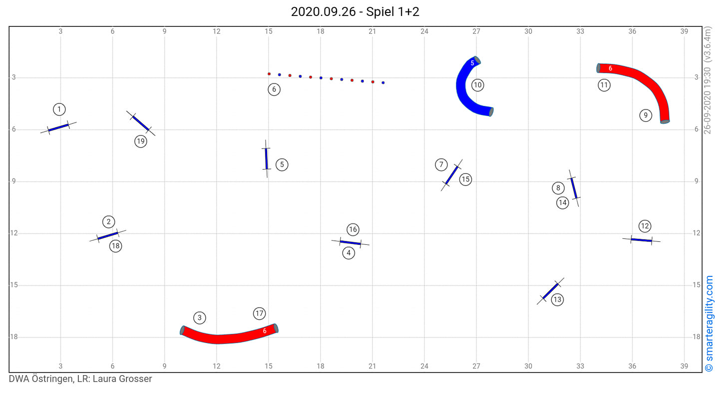 26.09.2020 Agility in ÖstringenDiesmal wieder mit Laura Grosser als Richter, da habe ich mich gefreut. Die letzten Versuche mit Emma waren jeweils in unkontrollierbaren Flitze-Orgien geendet, das wollte ich heute besser machen und habe einige Sachen in meinem Ablauf geändert. Angefangen damit, dass Emma bei der Begehung mit in der Halle war und zusehen durfte, dann habe ich auch die Leine am Start nicht in einem Moment weggeworfen, in dem Emma losflitzen konnte, ich habe die Starter, die nach mir an der Reihe waren, gebeten, nicht direkt in Emmas Sichtbereich neben dem Start zu spielen, und - ich habe mich beim Startritual durchgesetzt, auch wenn es ein wenig länger gedauert hat, bis Emma korrekt gelegen hat. A1-Lauf Emma: an der 4 ist Emma mal kurz vorbei gelaufen, ich habe mich eben noch nicht getraut, sie energisch genug an zusprechen, damit sie nicht wieder so viel Druck bekommt und das Flitzen anfängt. Aber sie hat sich wieder einfangen lassen und hat schön weitergearbeitet, so hatten wir nur eine Verweigerung und damit ein V (Rang 6 von 8) Spiel 1&2 Emma: auch hier eine Verweigerung an der 4 aufgrund meines mangelnden Einwirkens, aber das war mir egal, Emma hat dann schön weitergearbeitet, und damit noch ein V (Rang 12 von 21) |