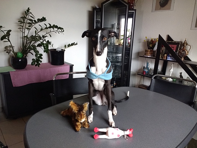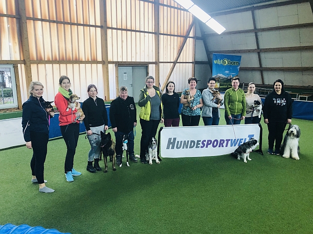 werden. --------------------------------------------------------------------------------------------------------------![]() Emma mit ein paar Geschenken, die ihr die Prüfung versüsst haben, und natürlich mit dem obligatorischen BH ![]() Die Begleithund-Prüflinge der Veranstaltung, wir drücken den Teilnehmern, die es dieses Mal leider noch nicht geschafft haben, ganz fest die Daumen fürs nächste Mal! ----------------------------------------------------------------------------------------------------- 20.02.2020 Das diesjährige Fastnachtstraining war wieder einmal ziemlich bunt: ----------------------------------------------------------------------------------------------------- 08.02.2020 Emma holt sich bei der CACIB in Eindhoven das SG2, Bericht hier ![]() ----------------------------------------------------------------------------------------------------- 06.02.2020 Emma hat wieder geturnt. Wenn ich mit den Gedanken woanders bin, schiesst sie schon mal ein bissl durch die Gegend :) ----------------------------------------------------------------------------------------------------- | ||