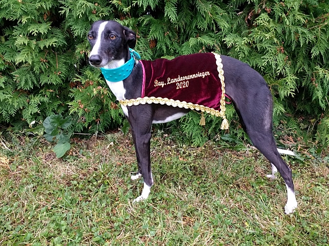 nach Hünstetten gefahren und hatten einen schönen Tag beim Abtraining. --------------------------------------------------------------------------------------------------------------Die liebe Karin Kölsch war vor Ort und hat tolle Fotos von unseren Hunden gemacht, das ist mir immer eine Sonderseite wert. ![]() Dieses Foto von Emma und Kostolani stammt vom rasenden Reporter, dessen Kamera danach aufgegeben hat, glücklicherweise war Karin vor Ort und hat tolle Fotos gezaubert ----------------------------------------------------------------------------------------------------- 16.10.2020 Agility in Hemsbach, Emma holt sich ein SG im A-Lauf, Bericht und Parcourspläne hier ![]() ----------------------------------------------------------------------------------------------------- 12.10.2020 Ecsy feiert ihren 6. Geburtstag! ![]() ----------------------------------------------------------------------------------------------------- 11.10.2020 Emma holt sich beim Landessiegerrennen in Mammnedorf und damit den Titel "Landesrennsieger Bayern 2020", Rennbericht hier![]() ----------------------------------------------------------------------------------------------------- 10.10.2020 Noch schnell eine körfähige Note holen, deshalb war Emma auf der Ausstellung in Offenbach, Ausstellungsbericht hier ----------------------------------------------------------------------------------------------------- 04.10.2020 Emma holt sich beim Landessiegerrennen in Bermatingen und damit den Titel "Landesrennsieger Baden-Würtemberg 2020", Rennbericht hier![]() Emma mit dem schicken Deckchen :) ![]() | ||