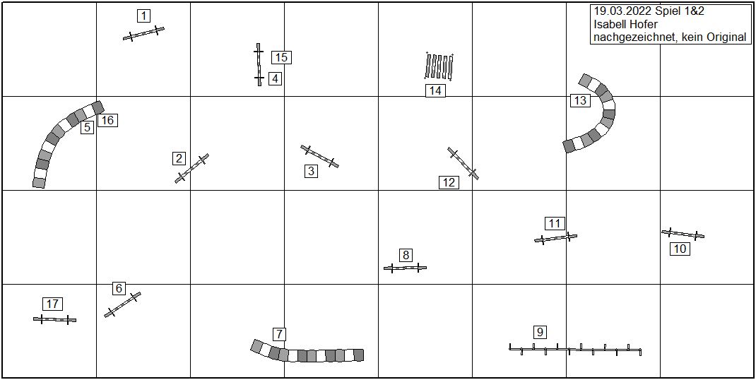 reduzieren ist für sie momentan absolut notwendig. Gerichtet hat Isabell Hofer, mit für sie ungewohnt schwierigen Parcours. A1-Lauf Emma: Sie hat sich brav hingelegt, auch die 2 ordentlich genommen, aber der Weg von der 2 auf den Tunnel 3 war einfach zu lang und so hat sie sich mittendrin für den Steg entschieden. DIS Spiel 1&2 Emma: Emma hatte vorher schon geschlafen, und ich habe sie irgendwie nicht richtig wach bekommen, so lief sie dann bis zur 13 mit angezogener Handbremse. Dann gab sie plötzlich Gas, gerade da, wo man es nicht brauchen konnte, denn der Weitsprung stand "aus der Spur", so dass man da kontrollieren musste, und beinahe wäre sie mir dann nach der 15 über die 2 gegangen. Aber freundlicherweise wurde mir der Dreher nicht als Verweigerung angezeigt, so war es dann ein V0 auf Rang 5 Das Video vom Tage:
