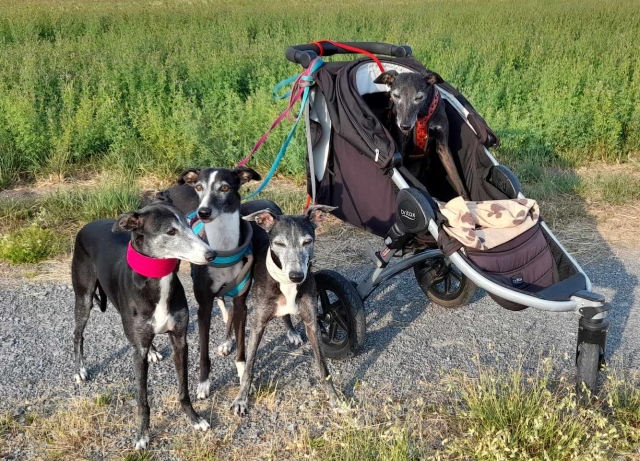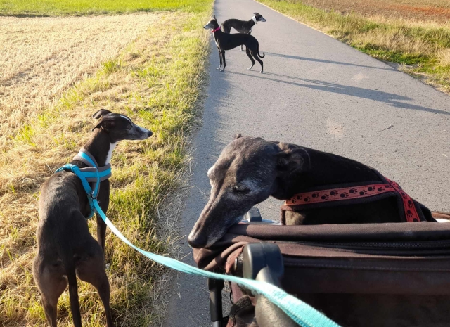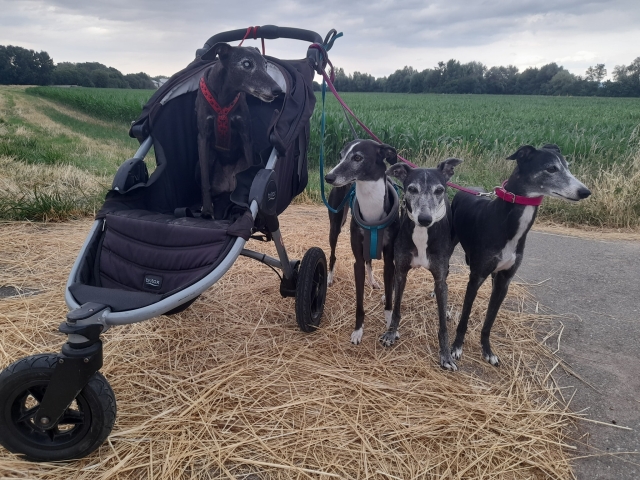 hat wieder Spaß und der Zeh hält ----------------------------------------------------------------------------------------------------- 23.07.2023 Ich habe ganz schnell die letzte Gelegenheit ergriffen, den Workshop 4 "Verletzungserkennung" von und mit Tony Gallagher mitzumachen. Ein super Refresher von Workshop 1-3 plus zusätzlichen Skills, die mir bei meinen Hunden wirklich nützlich sind. Danke an Tony und Jasmin für den interessanten und hilfreichen Tag! ![]() ----------------------------------------------------------------------------------------------------- 19.07.2023 Iuju genießt ihre Fahrten im Iujumobil, Emma ist noch an der Leine aber ohne Verband, die Fäden sind raus und es sieht prima aus! ![]() Ecsy und Midi sichern den Weg, Emma würde gern helfen aber das dauert noch ![]() ----------------------------------------------------------------------------------------------------- 05.07.2023 der erste Tag nach der OP, Emma geht es gut, Treppen werden jetzt wieder getragen aber beim Gassi benutzt sie das Beinchen schon gelegentlich wieder ![]() ----------------------------------------------------------------------------------------------------- 04.07.2023 der Tag, an dem Emma das zweite Mal operiert wurde, der Stift im Zeh kam raus. Ich war sehr erleichtert, als Dr. Willuhn irgendwann kurz über den Tresen zu mir rief "alles gut!", die zwei Stunden Wartezimmer nachdem ich Emma wegschlafen sehen hatte waren schon sehr bedrückend, aber irgendwann habe ich sie aus Richtung OP protestierend schimpfen gehört, und da wusste ich, dass sie bald wieder bei mir ist. ![]() Emma gerade raus aus dem OP und noch ein wenig beduselt von den Narkosemitteln ----------------------------------------------------------------------------------------------------- 02.07.2023 Iuju hat jetzt ein Iujumobil. Da sie längere Strecken nicht mehr so ohne weiteres durchhält und mir die knapp 12 Kilo dann doch irgendwann zu schwer zum Tragen werden, habe ich kurzerhand einen gebrauchten Buggy gekauft, in dem Iuju immer dann, wenn sie nicht mehr laufen mag, Platz nimmt, sich eine Zeit lang fahren lässt und sobald sie wieder Lust hat, macht sie sich bemerkbar und darf wieder ein Stück laufen ![]() ----------------------------------------------------------------------------------------------------- 01.07.2023 Twilight-Show beim DCW Darmstadt, Ecsy holt sich ein V3 in der Veteranenklasse, Ausstellungsbericht hier, und gewinnt mit ihrer Losnummer diese wunderhübsche Tasche: ![]() ----------------------------------------------------------------------------------------------------- | ||