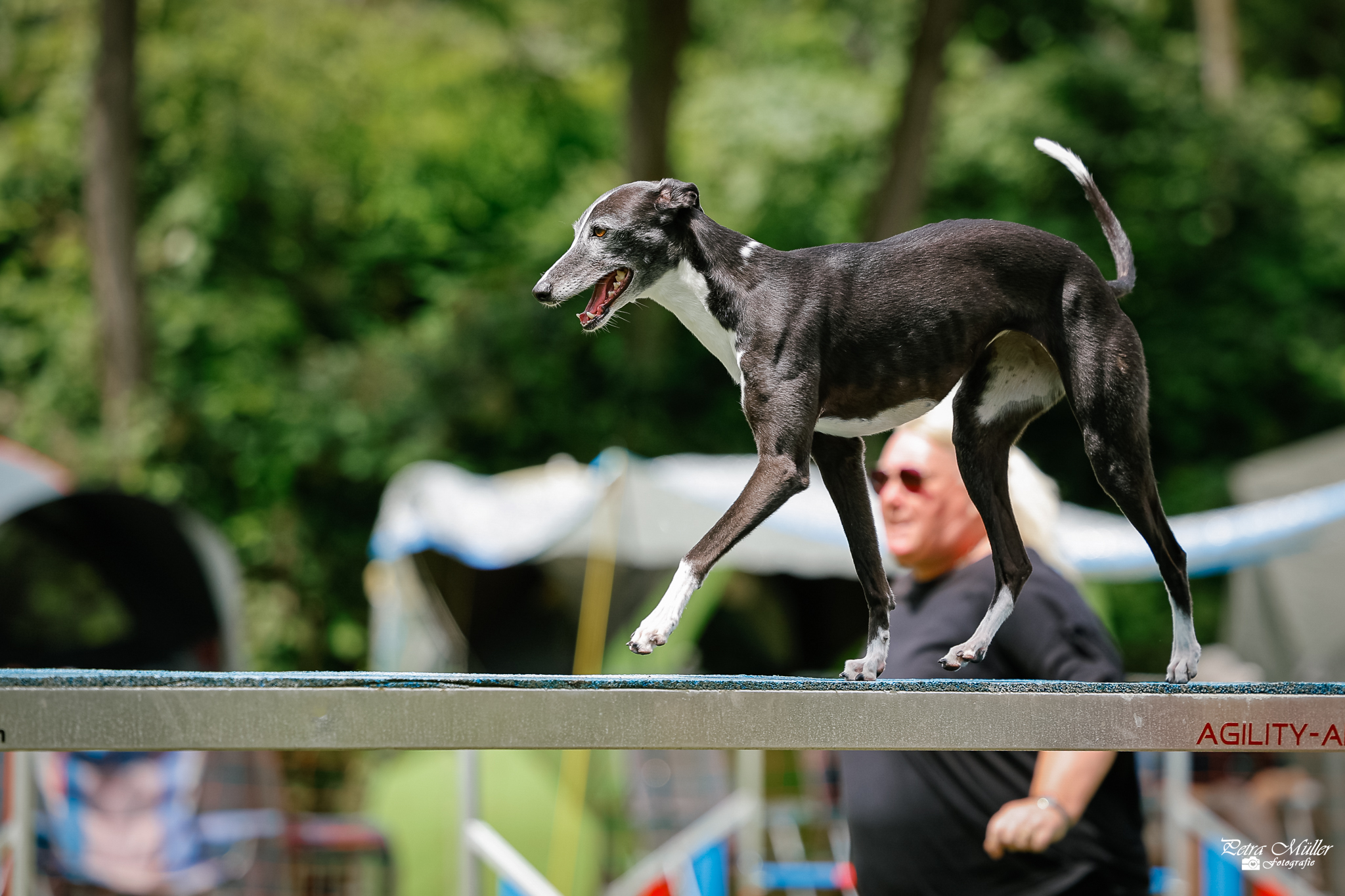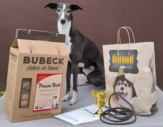A2 und damit die letzte Quali fürs A3! Bericht und Parcourspläne hierUnd dank der lieben Petra Müller gibt es auch noch Fotos vom Lauf (anklicken für Sonderseite): ![]() ----------------------------------------------------------------------------------------------------- 09.06.2024 Tag des Hundes, Vormittags hatten wir eine Agilityvorführung in unserem Verein in Neulussheim. Danach war es schon zu spät um auf irgend eine Rennbahn zum Training zu fahren, aber für das Jederhundrennen in Wiesental war noch genug Zeit. Diesmal war nur Emma am Start, Ecsy war morgens nicht 100% sauber gelaufen, die hatte also Pause. Emma war leider wieder der einzige Hund in der Wind/Sporthundeklasse, das war aber auch gut so, sie war auf die 50 Meter Rennstrecke eine knappe Sekunde schneller als alle anderen Hunde vor Ort. Also erster Platz und schon wieder fette Beute! ![]() ----------------------------------------------------------------------------------------------------- 02.06.2024 Jederhundrennen in Germersheim Ecsy und Emma waren durch die Ereignisse der letzten Tage völlig durch den Wind, ich fühlte mich ebenfalls mental und körperlich absolut KO, mein Asthma spielte wilde Dinge mit meiner Lunge, also war an das eigentlich gemeldete Agilityturnier als Ablenkung nicht zu denken. Die Windhundrennbahnen in der Nähe hatten alle ob des vielen Regens ihr Training abgesagt. In den social media stoperte ich über die Ankündigung eines Jederhundrennens in der Pfalz, kurz auf die Uhr geschaut - ok, reicht noch bis Meldeschluss, also ab ins Auto und hingedüst. Der Plan ging auf, man merkte den Mädels zwar an, dass sie angeschlagen waren, aber als sie die ersten flitzenden Hunde sahen, waren sie begeistert bei der Sache. Glücklicherweise gab es eine separate Windhundeklasse, leider waren Ecsy und Emma die einzigen Starter, aber das hat sich dann auch gelohnt, Ecsy gewann mit dem zweiten Platz einen Gutschein über 15 Euro und Emma als Erstplatzierte sogar einen über 20 Euro, einzulösen bei dem freundlichen Stand mit den Knabbersachen auf dem Platz, da haben wir dann noch mal ordentlich zugeschlagen! Und so eine Knabberorgie vertreibt dann eine Zeit lang Kummer und Sorgen... ![]() ----------------------------------------------------------------------------------------------------- 01.06.2024 Unsere Midi ist mal schnell der Iuju hinterhergerannt. Ein Tumor am Unterschenkel des rechten Hinterbeinchens hatte zu einer Spontanfraktur geführt, Amputation und Chemotherapie wollte ich meinem Midi-Mausi nicht zumuten. In meinen Armen ist sie sanft eingeschlafen und hat jetzt keine Schmerzen mehr. Mein bester Agilityhund, mein Duracellhäschen, meine liebe Renn- und Coursingmaus, mein Hooperstalent, mein schmusiger Bettpupser, mein witziges kleines Ding-Ding, jetzt ist sie wieder bei ihrem Papa. ![]() ----------------------------------------------------------------------------------------------------- | ||