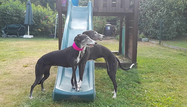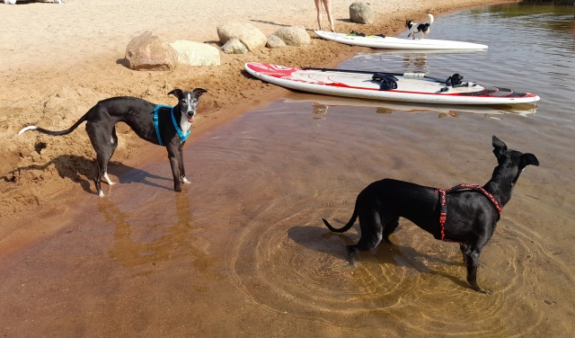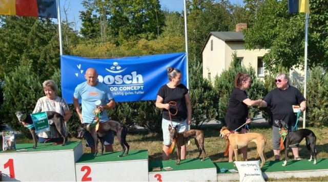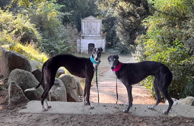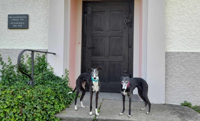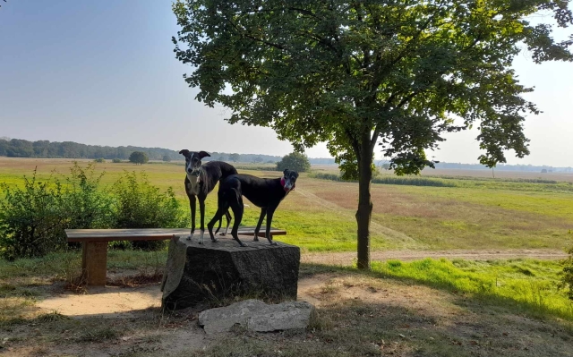 mit dem kleinen Cowboy und Luzi. Emma ist nach wie vor noch recht langsam, aber wann immer sie heil aus einem Lauf kommt freue ich mir einen Knubbel in den Bauch. Danke Saskia Höfken für das tolle Video ----------------------------------------------------------------------------------------------------- 21.09.2024 Jederhundrennen bei den "Agility Smiley Dogs" in Birkenau, hier durften die Flitzepfoten endlich auch mal wieder mitmachen, Ecsy holte sich den ersten Platz bei den Senioren und Emma den ersten Platz bei den Medium-Hunden. Es war ein nettes Fest und die Pokale waren wunderhübsche Anfertigungen. ----------------------------------------------------------------------------------------------------- 30.08. - 06.09.2024 Unser Urlaub, ein paar Tage an der Goitzsche, und anschließend noch das herrliche Thüringen, einfach genial war die Zeit, auch wenn ich vermute dass die Damen irgendwann von meiner Umtriebigkeit die Nase voll hatten und gern eher ins Büro zurückgekehrt wären :) ![]() Der Fuchsbau in Walsburg, hier bin ich vor 45 Jahren das erste Mal eingekehrt ![]() Die wunderschönen Wiesen Richtung Walsburg, da könnte man Coursings ziehen! ![]() Im Wald wird abgeforstet, es ist lange nicht mehr so grün wie früher ![]() Die Nikolauskapelle in Dörflas, die kleinste Kirche Mitteldeutschlands ![]() Was mir die Saale als mein Lieblingsfluß ist,das ist mir die Wisenta als mein Lieblingsbach, leider existieren einige der vertrauten Wege aus meiner Vergangenheit ob diverser Überschwemmungen an Fluß und Bach wohl schon lange nicht mehr, das hat uns eine ungeplant schwierige lange Wanderung beschert :) ![]() Weiter ging es - An der Saale hellem Strande - schöne Erinnerungen an vergangene Zeiten ![]() Abschied von der Goitzsche, das war ein klasse Urlaub ![]() Chillen am frühen Morgen ![]() die Goitzsche am Privatstrand ![]() Abkühlung am Privatstrand, Emma hat SUP ausprobiert (natürlich alleine, die braucht für sowas keine Menschen) ![]() Wörlitzer Park mit kühlen Wegen im heißen Sommer ![]() die weiten Landschaften in Sachsen-Anhalt ![]() Wörlitzer Park, wunderschöne Brücken ![]() Ausflug nach Burgkemnitz zum Irrgarten ![]() Im Garten meiner Schwester wurden zum Urlaubsanfang erst mal die Spielgeräte getestet ----------------------------------------------------------------------------------------------------- 01.09.2024 Herbstmeisterschaft beim WRV Greppin, Emma holt sich in der Seniorenklasse , Rennbericht